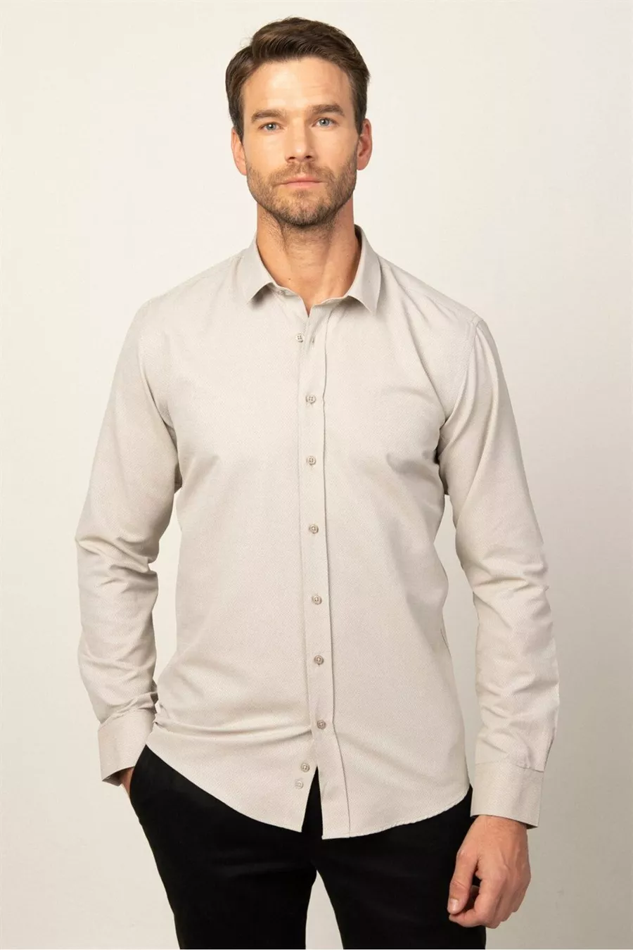 Modern Slim Fit Cotton Easy Iron Jacquard Men's Shirt