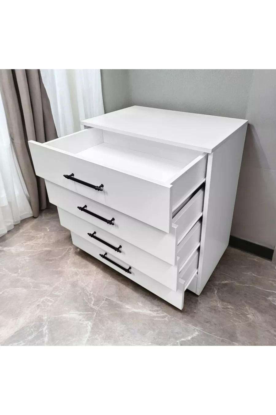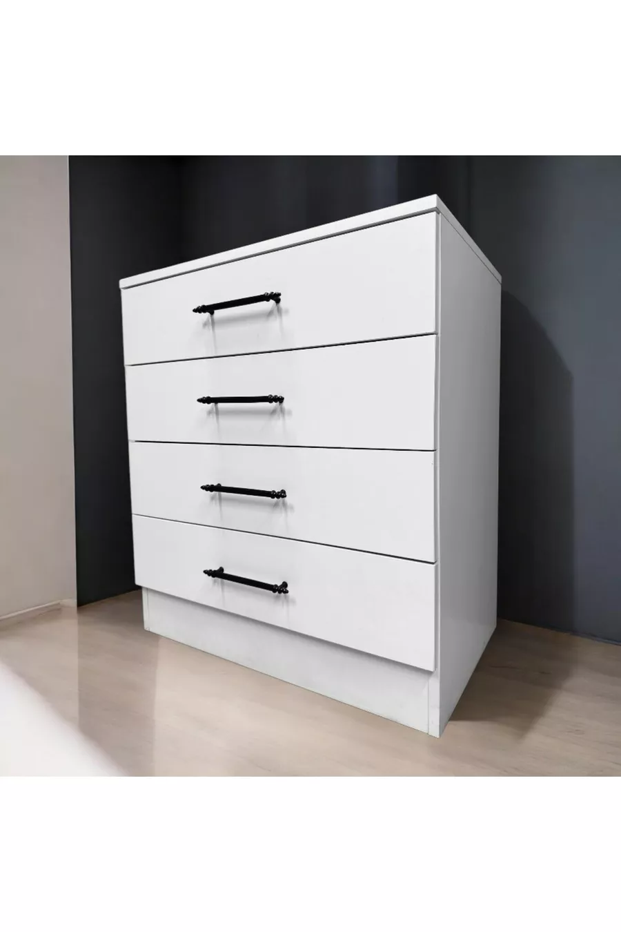 Color: White Warranty Period: 2 Years Material: Particle Board Height: 82 cm Width: 73 cm Depth: 47 cm Number of Drawers: 4 Product Feature: With Drawers Style: Scandinavian Theme / Style: Modern Origin: Turkey Feature: With Drawers
