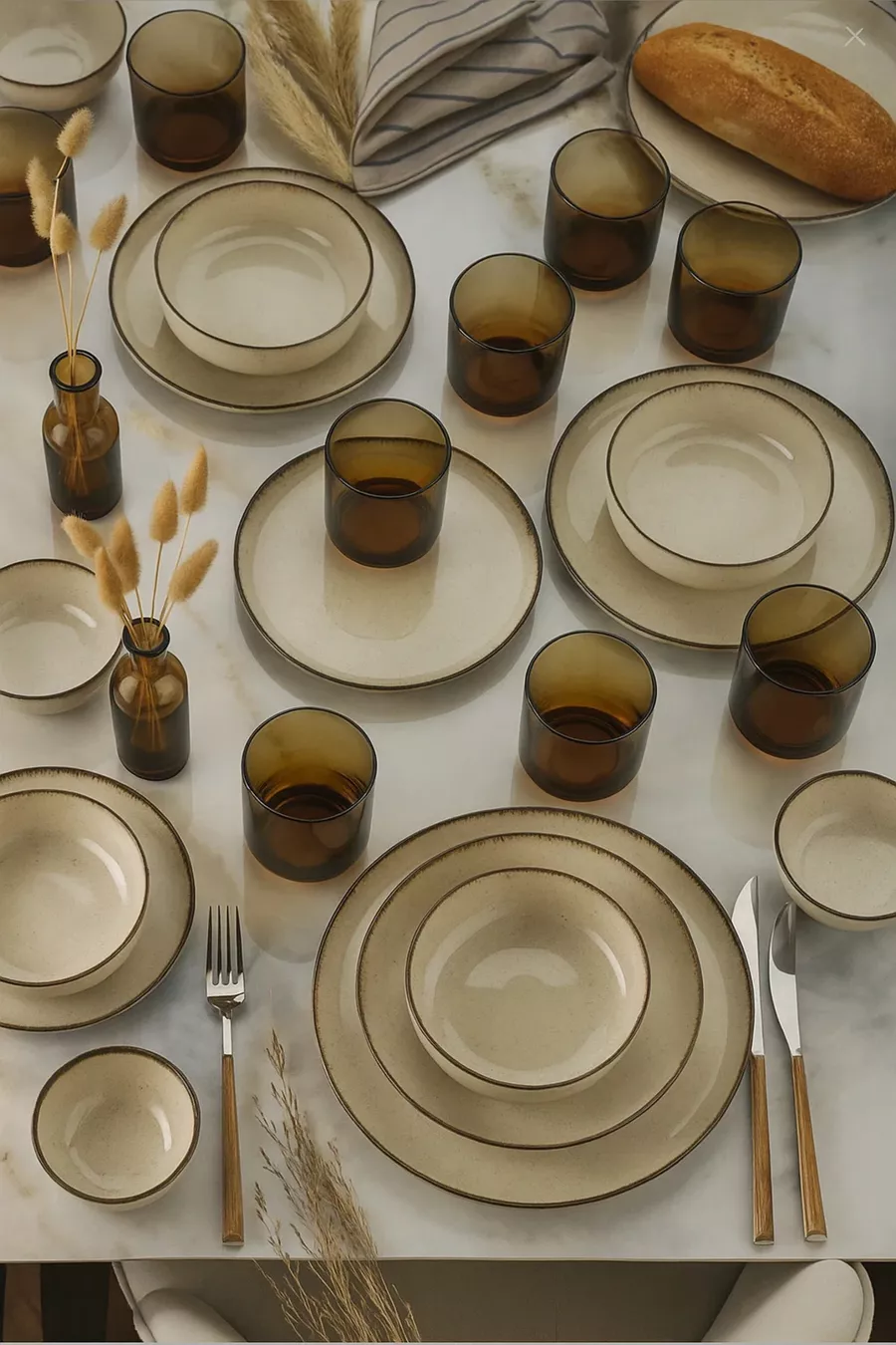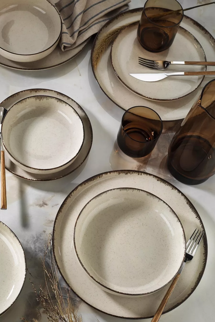 Color: Beige Capacity: For 6 People Material: Porcelain Number of Pieces: 19-24 Feature: Dishwasher Safe Theme / Style: Classic Shape: Round Origin: TR Food Contact Symbol: Yes Care Instructions (Food Contact): Dishwasher safe.