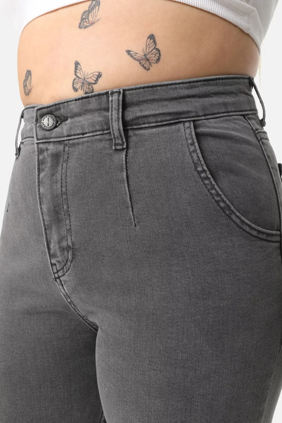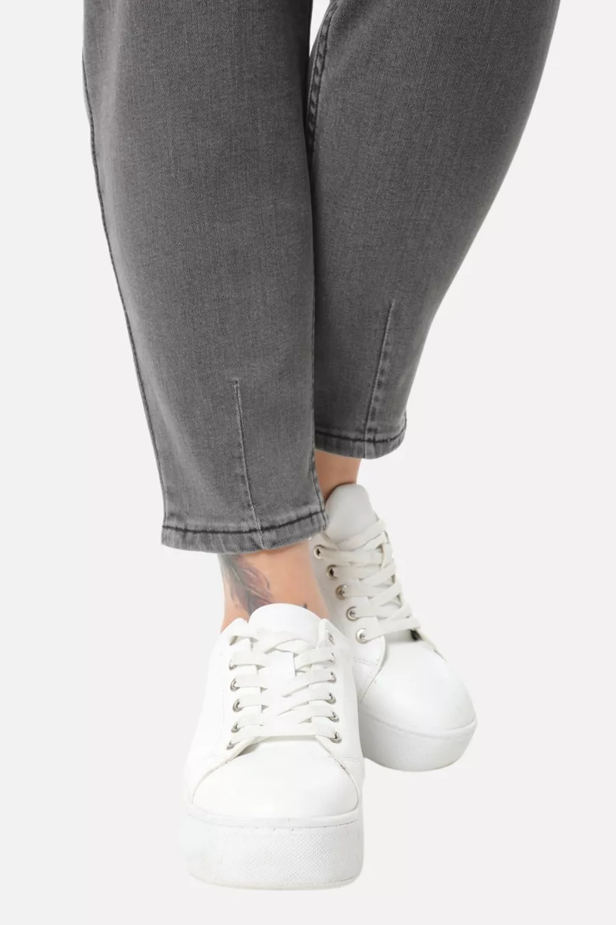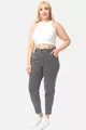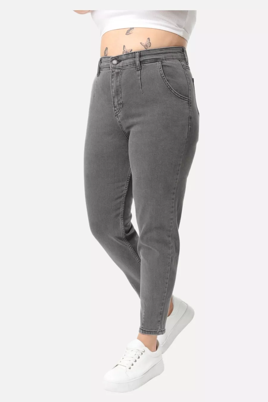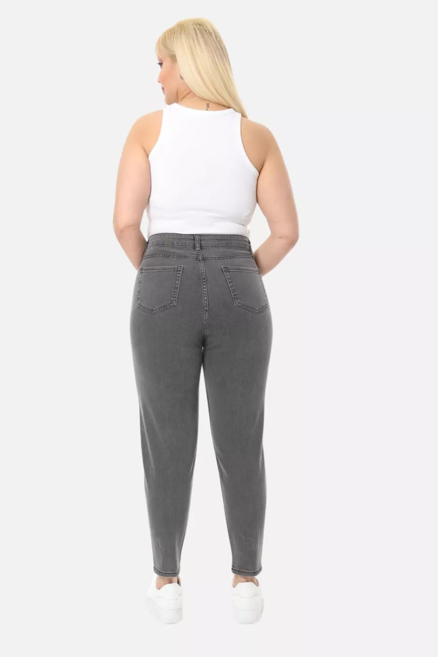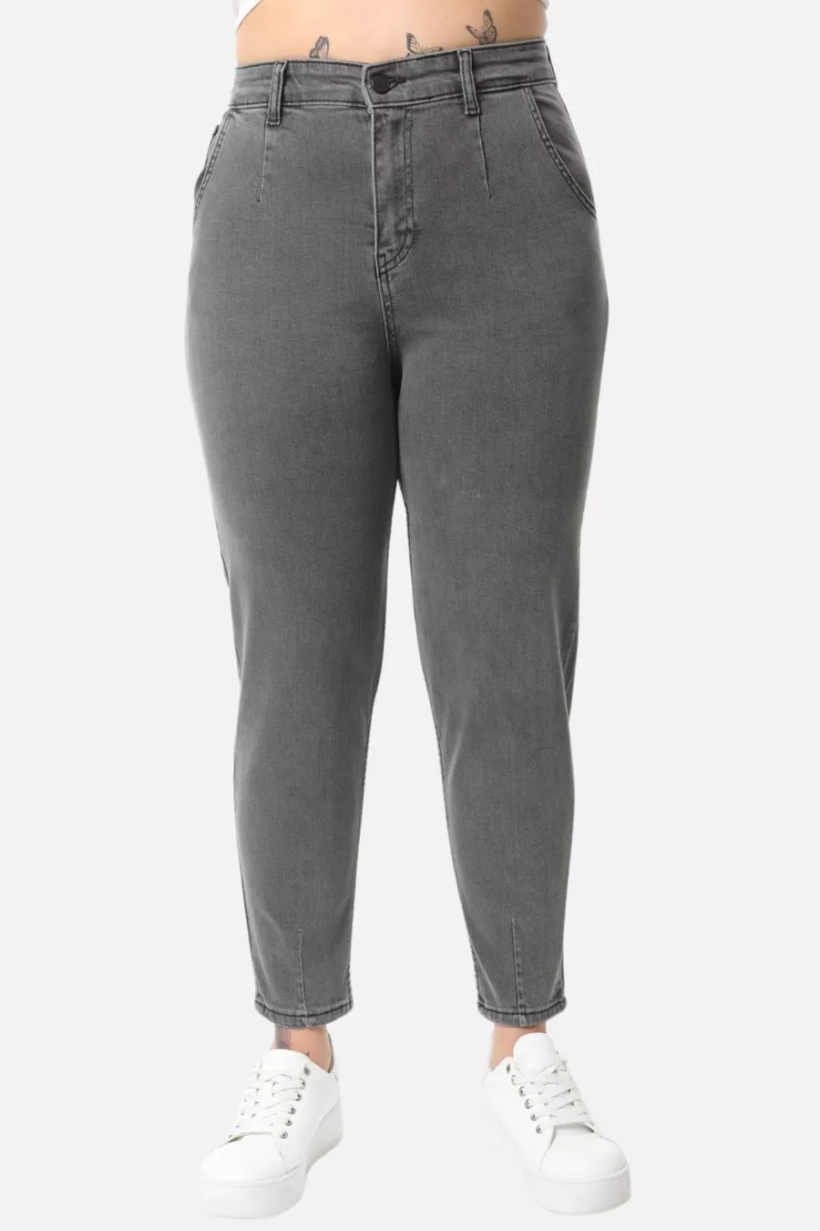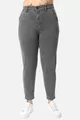 Mom Fit Jean Plus Size High Waist Carrot Cut Slim Leg Pleated Stretch Denim Pants -light gray