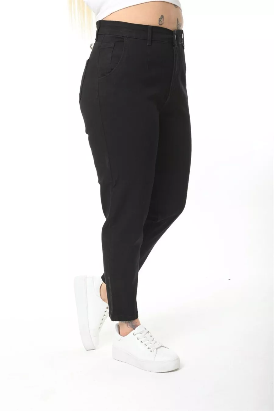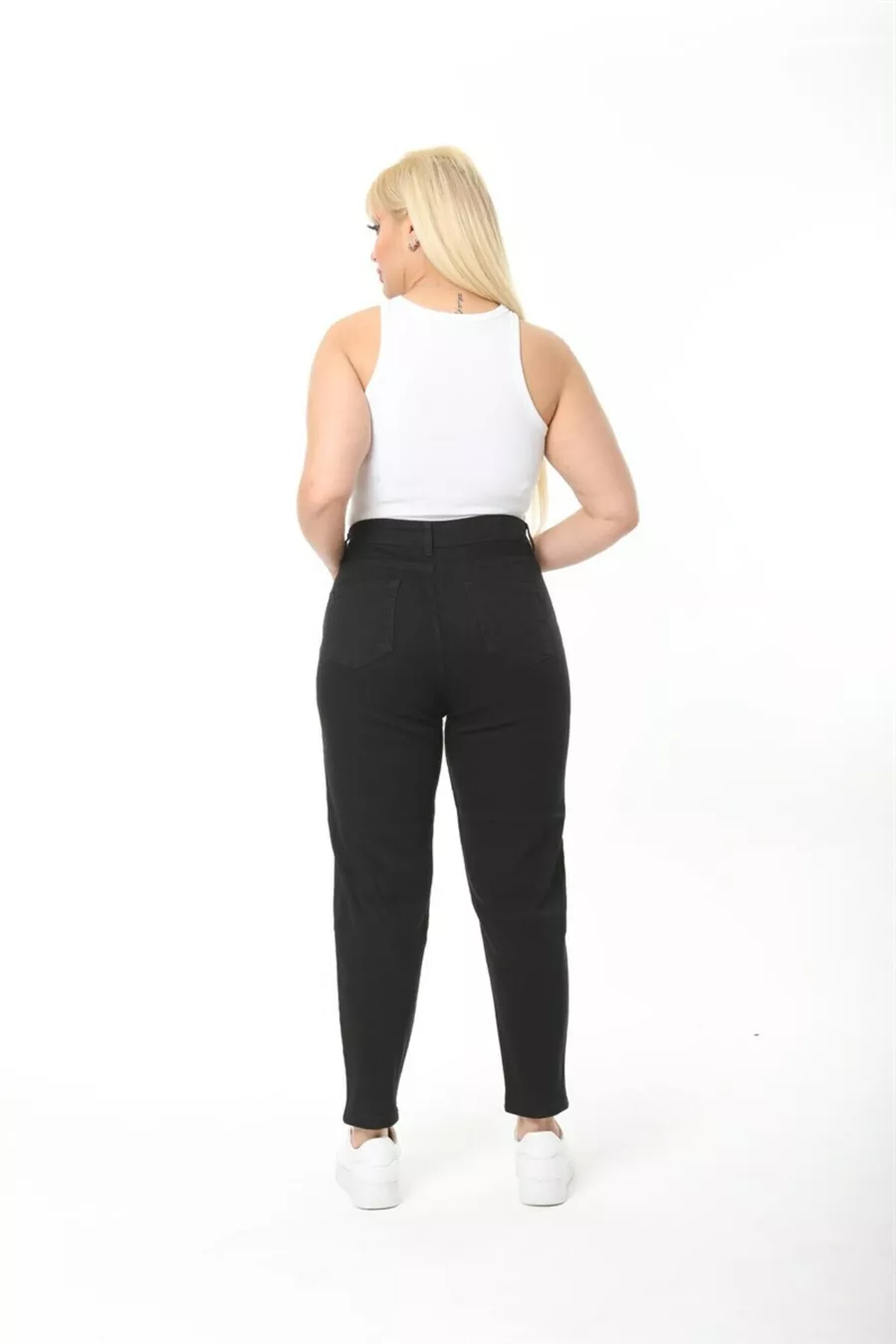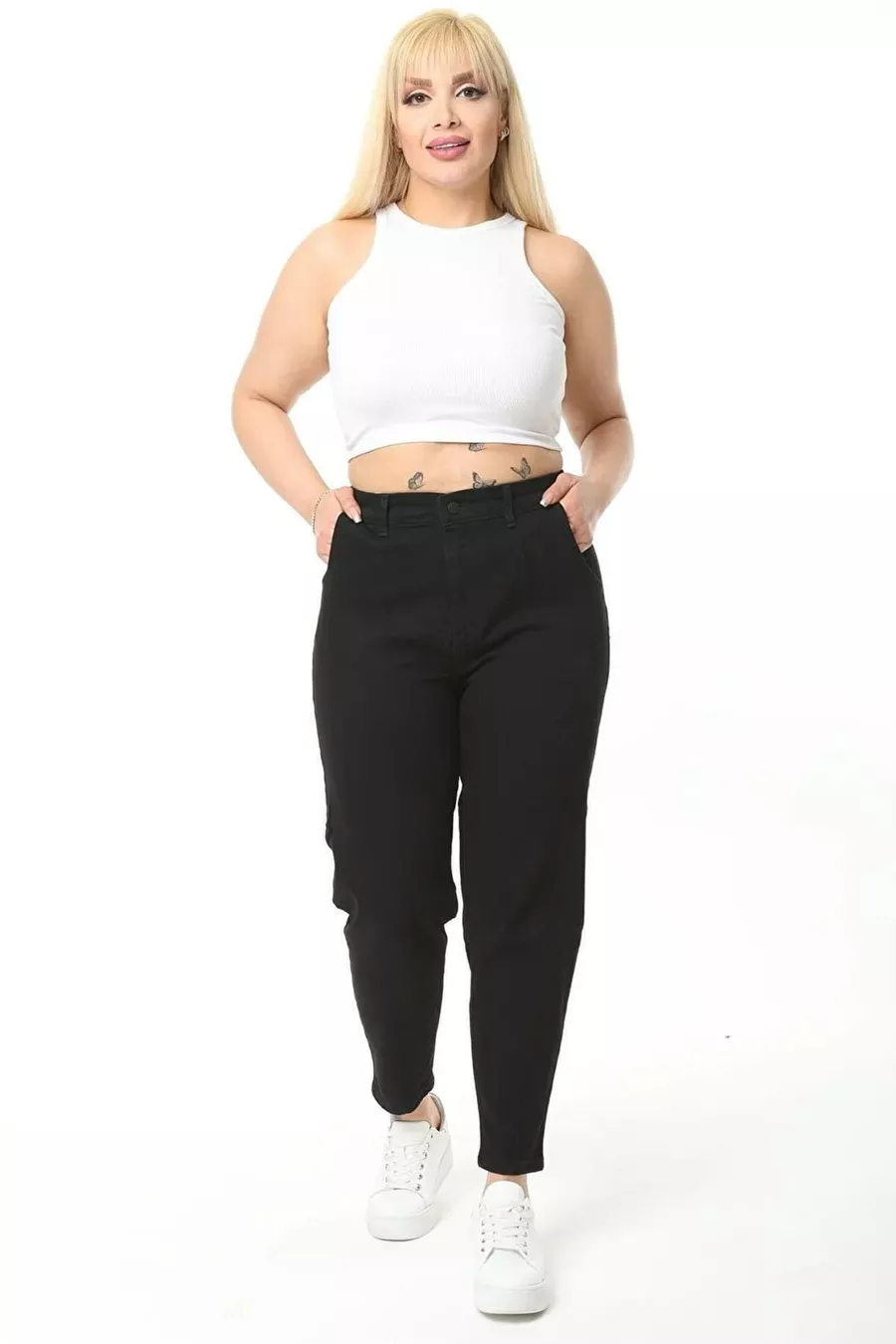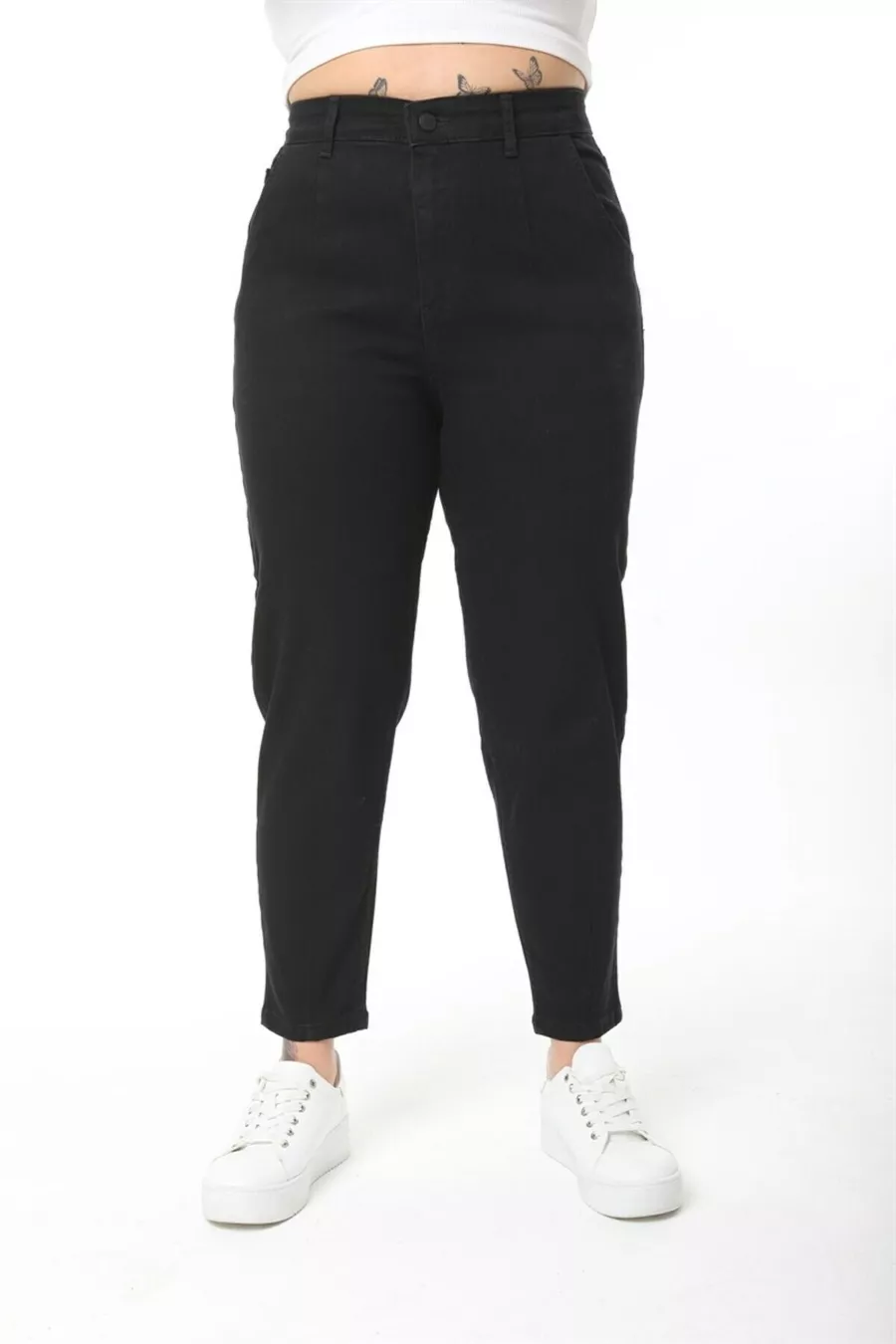 Mom Fit Jeans Plus Size High Waist Carrot Cut Slim Leg Pleated Stretch Denim Pants - Black