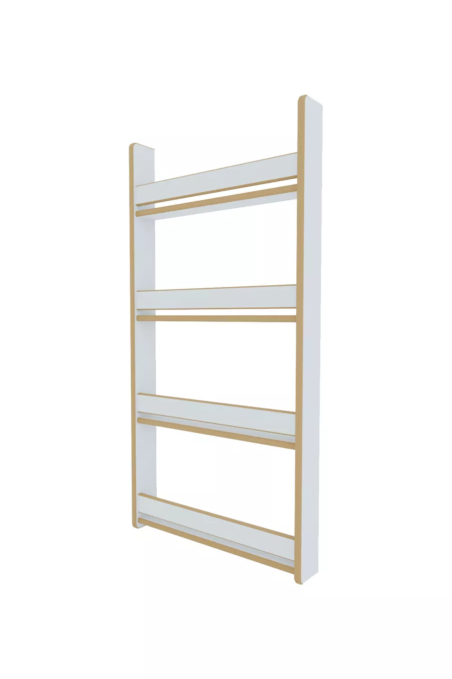 Material: MDF Theme / Style: Modern Depth: 10 cm Height: 120 cm Color: White Number of Shelves: 4 Style: Modern Feature: Rechargeable