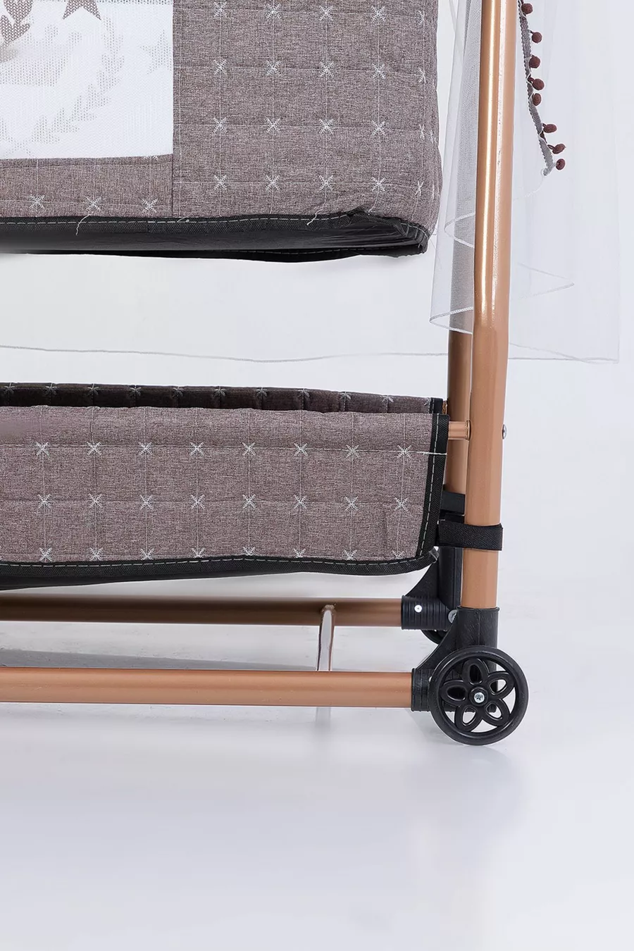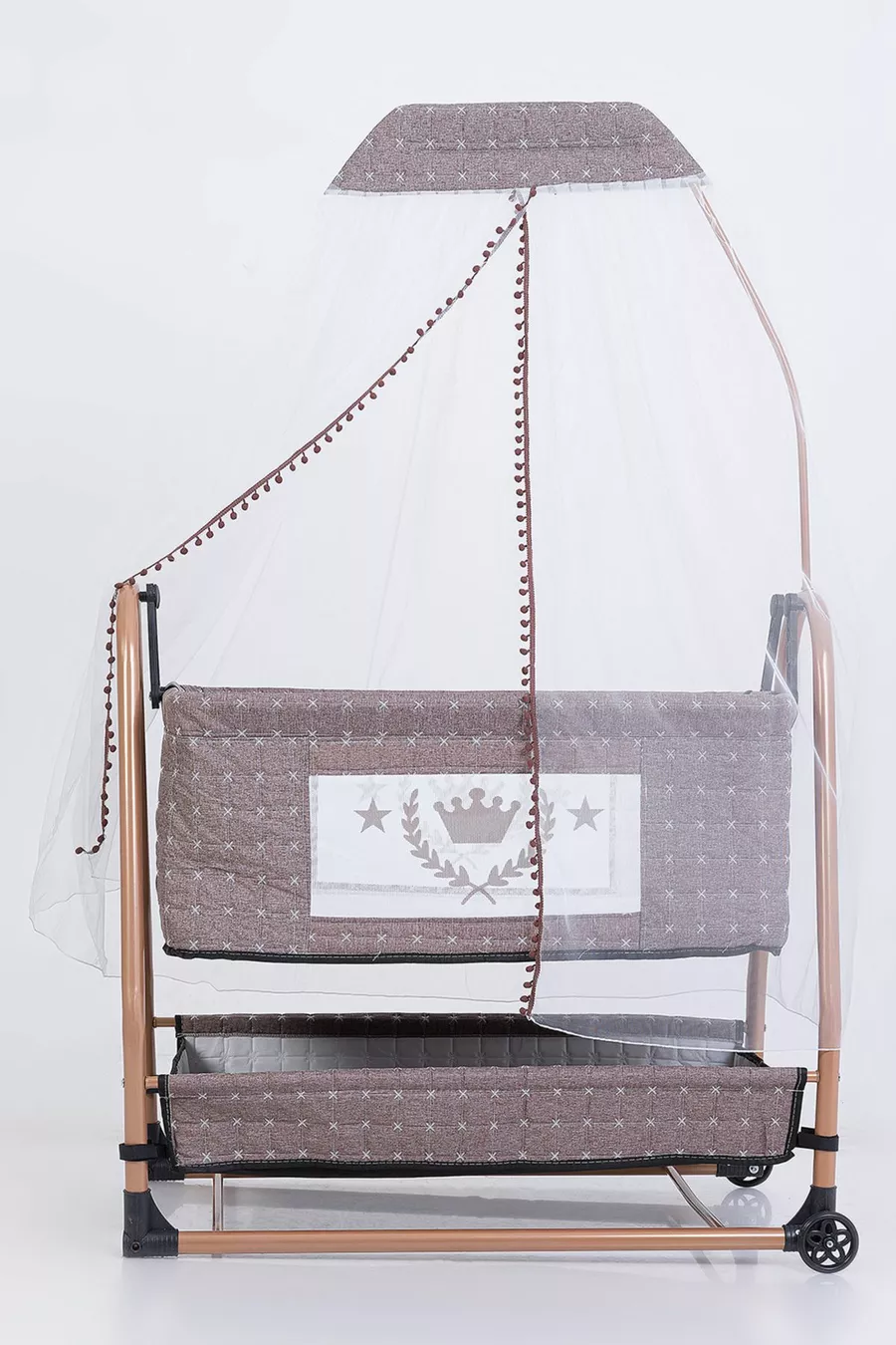 Material: Metal Color: Brown Carrying Capacity: 15 kg Warranty Period: Not specified Function: Rocking Usage Type: Rocking Rocking Function: Yes Width: 50 cm Inner Mattress Size: 50 x 100 Depth: 34 cm Height: 100 cm Theme / Style: Classic Feature: Rocking