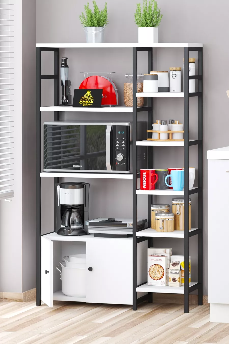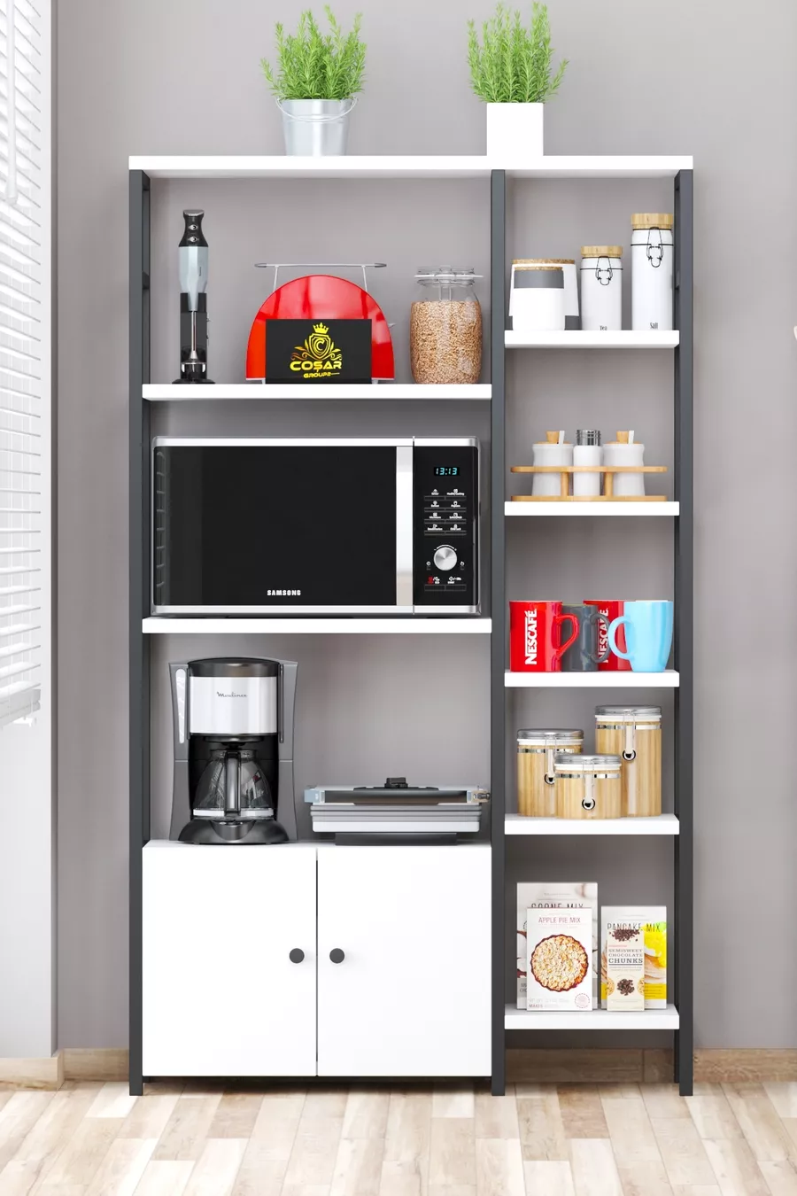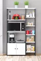 Multi-Purpose Cabinet Kitchen Stand 2-Door 8-Shelf Coffee Corner Kitchen Shelf Kitchen Storage White