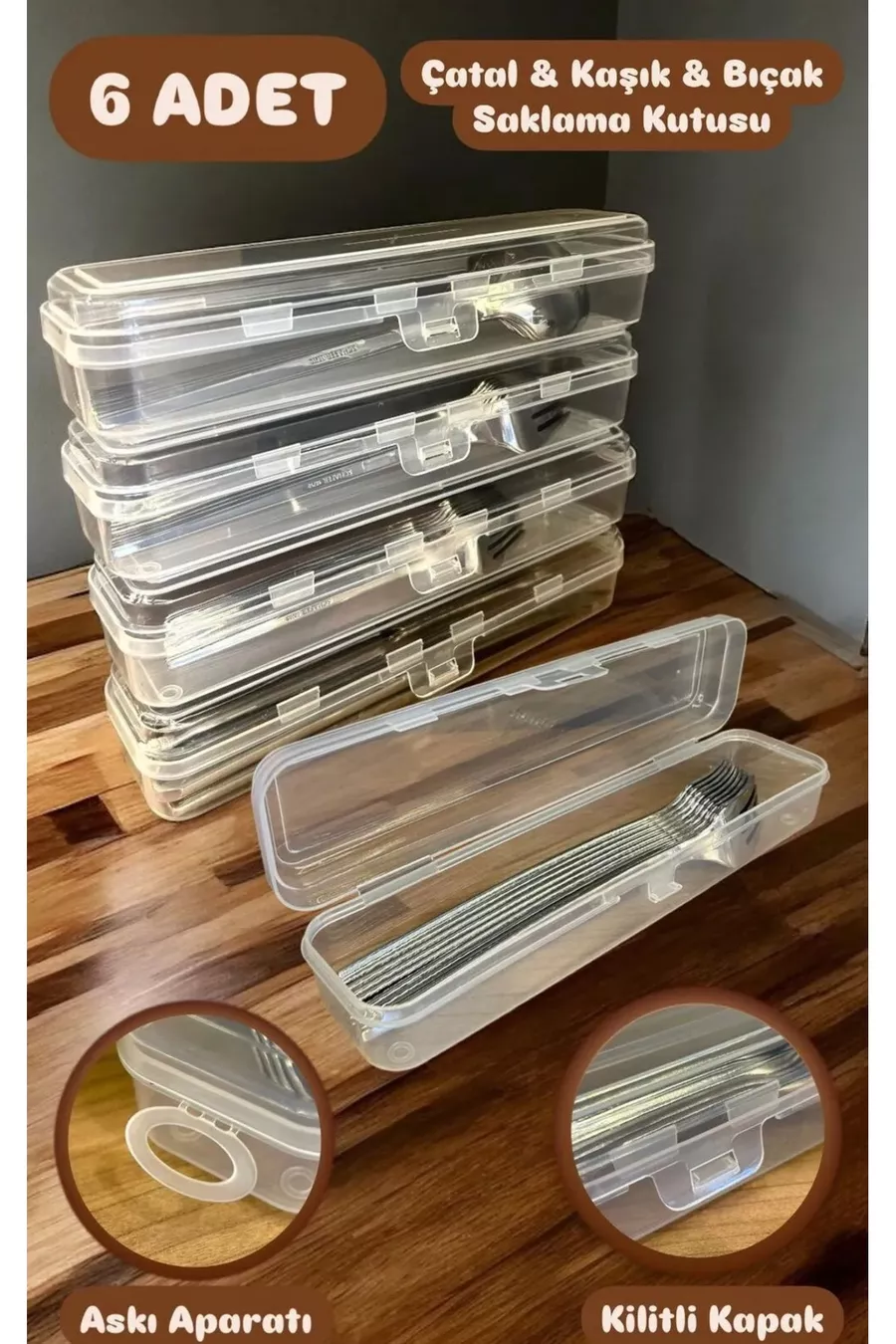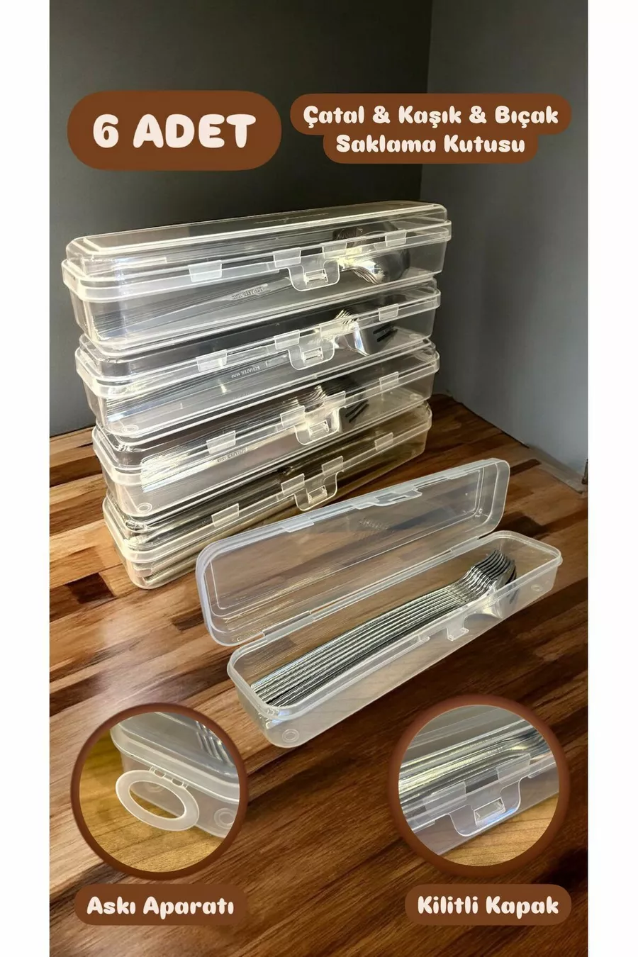 Multix 6-Piece Spoon Storage Container Fork and Spoon Carrying Set Multi-Purpose Organizer Box with Lid