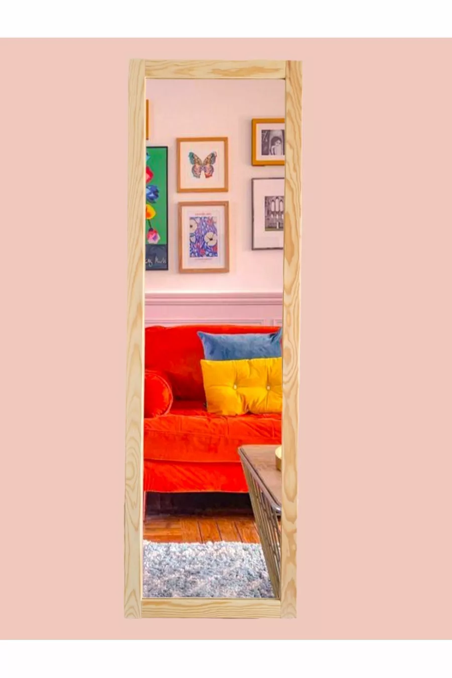 Natural Wood Frame Wall Hall Mirror Full-Length Mirror