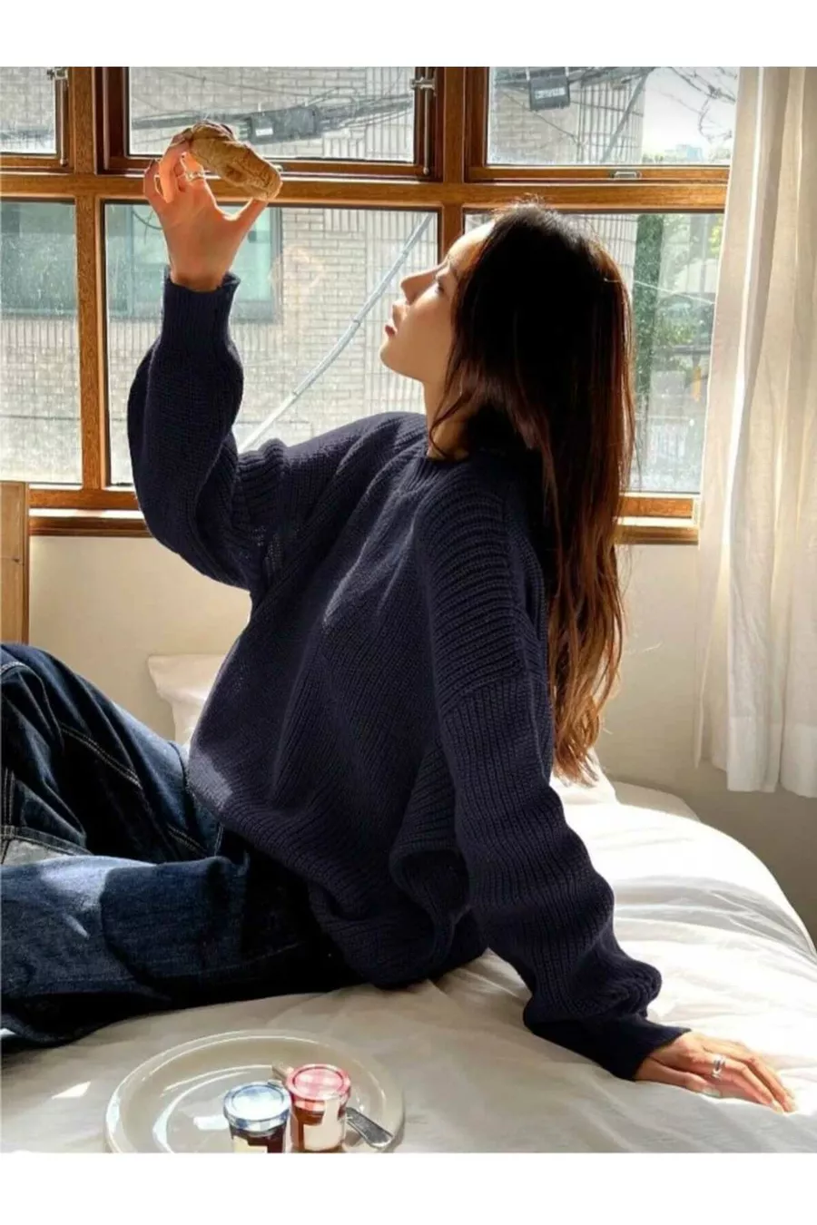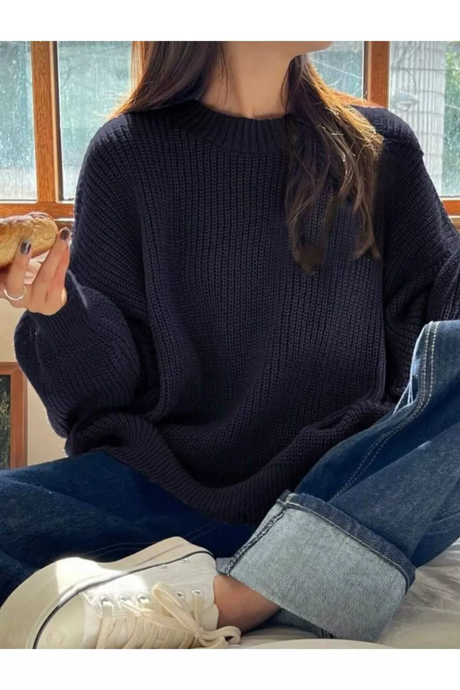 Pattern: Plain Fit: Oversize Neck Type: Crew Neck Fabric Type: Knit Color: Navy Material: Woven Sleeve Type: Long Sleeve Pocket: No Pockets Product Detail: Knitted Detail Product Type: Plain Sleeve Length: Long Thickness: Thick Collection: Design Silhouette: Oversize Occasion: Casual Length: Long Additional Feature: No Additional Feature Print/Embroidery Technique: No Print Persona: Cool & Comfort Weave Type: Knitted Sustainability Detail: Organic Number of Pieces: 1 Belt/Strap Status: Beltless Washing Instructions: T02 Season: Winter Origin: TR Box Status: No Box
