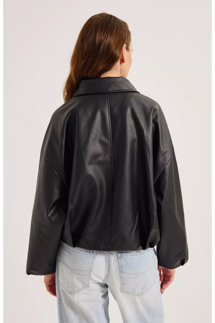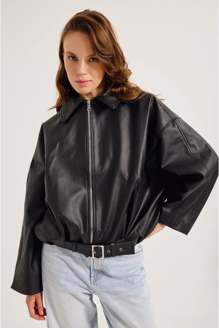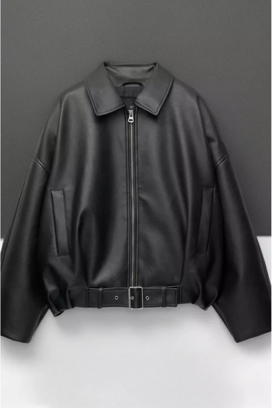 Sleeve Type: Low Sleeve Pattern: Plain Fit: Oversize Collar Type: Blazer Collar Material: Suede Fabric Type: Woven Color: Black Closure Type: Zippered Product Detail: Faux Suede Pocket: No pockets Sleeve Length: Long Collection: Casual / Everyday Thickness: Medium Lining Status: Lined Length: Regular Silhouette: Bomber Occasion: Everyday Additional Feature: Washed Weave Type: Suede Sustainability Detail: No Persona: Fashion Forward Belt/Waistband Status: Without belt Product Type: Plain Material Composition: 100% Faux Leather Washing Instructions: T101 Season: All Seasons Origin: TR Box Status: No box