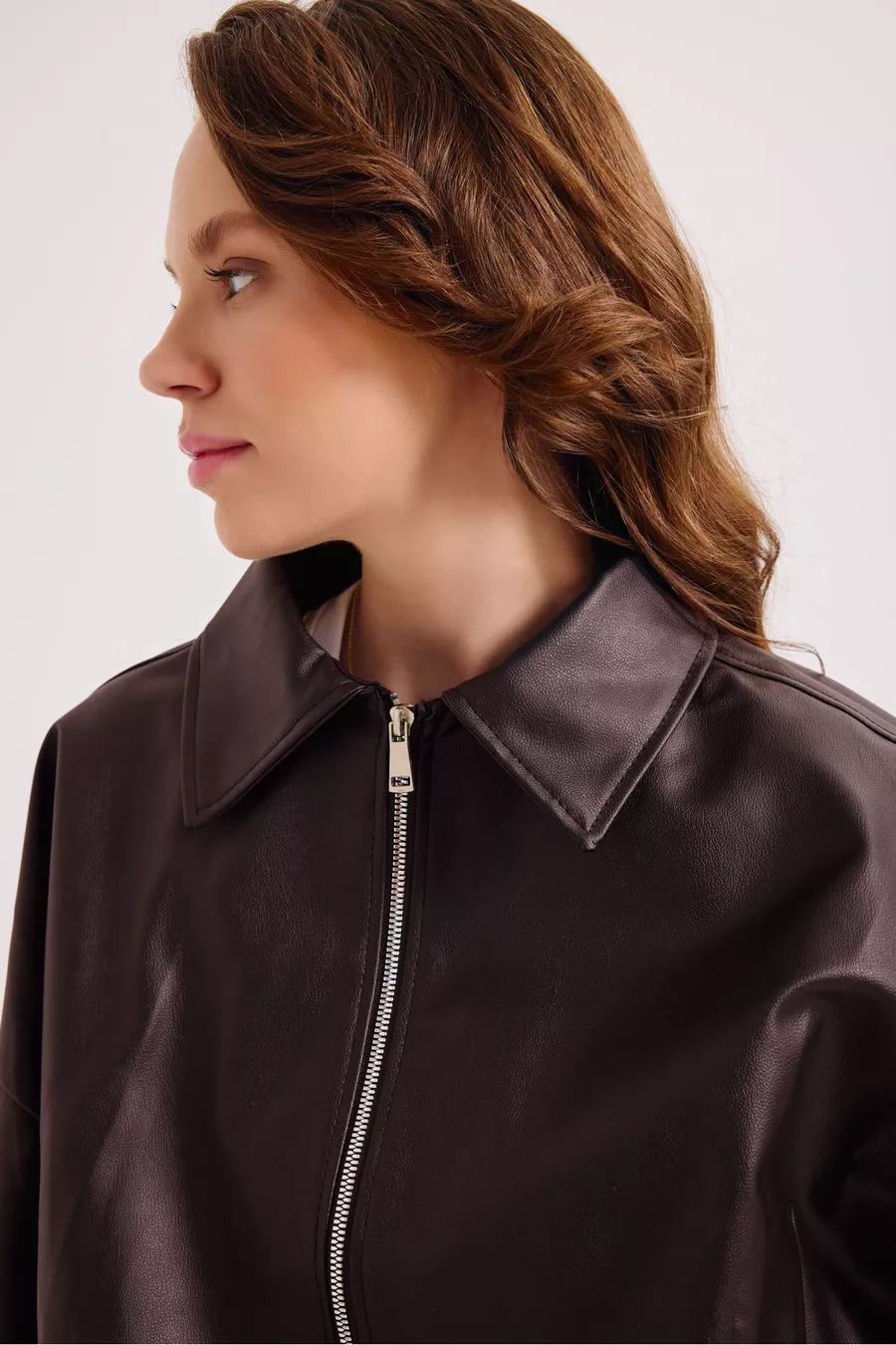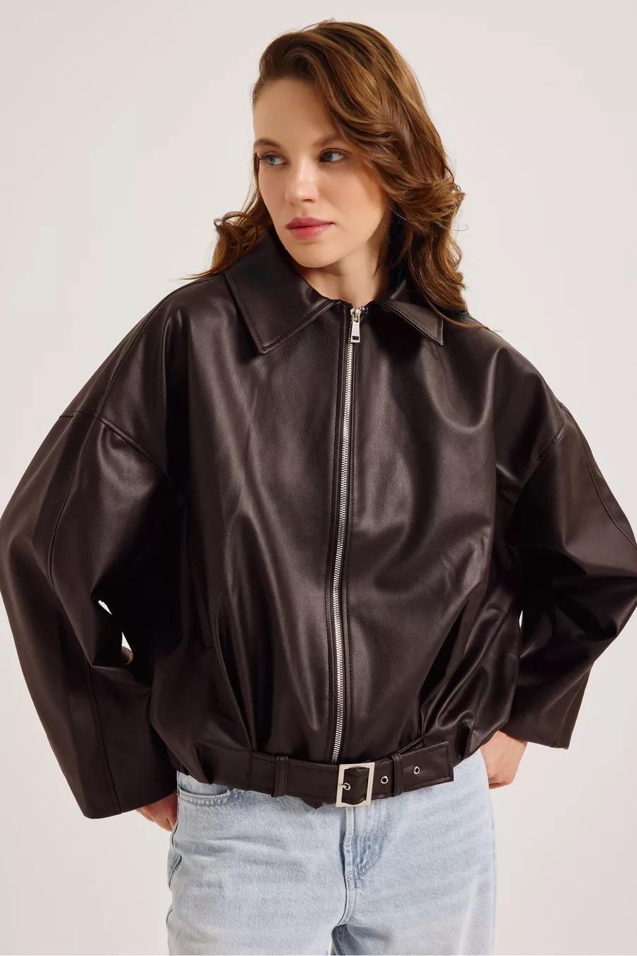 Sleeve Type: Low Sleeve Pattern: Plain Fit: Oversize Collar Type: Jacket Collar Material: Suede Fabric Type: Woven Color: Brown Closure Type: Zippered Product Detail: Faux Suede Pocket: No Pockets Sleeve Length: Long Collection: Casual / Everyday Thickness: Medium Lining: Lined Length: Regular Silhouette: Bomber Occasion: Daily Additional Feature: Washed Weave Type: Suede Sustainability Detail: No Persona: Fashion Forward Belt/Strap: Without Belt Product Type: Plain Material Composition: 100% Faux Leather Washing Instructions: T101 Season: All Seasons Origin: TR Box Condition: No Box