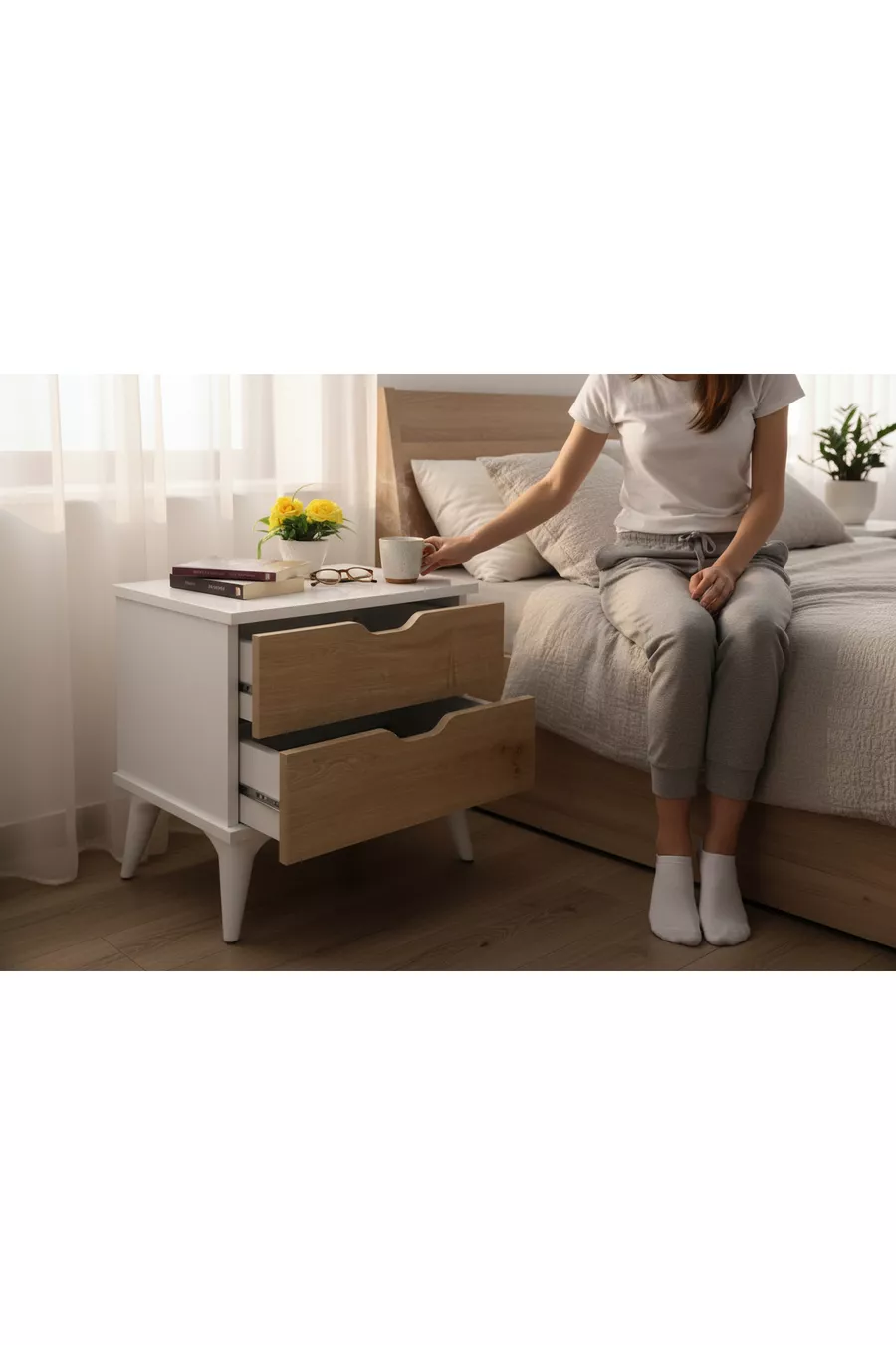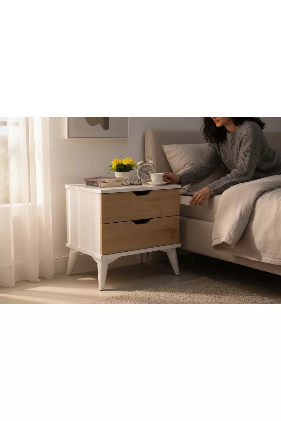 Material: Particleboard Color: White Warranty Period: No warranty Number of Drawers: 2 Height: 50 cm Width: 45 cm Depth: 37 cm Style: Modern Theme / Style: Modern Origin: Turkey Feature: Square