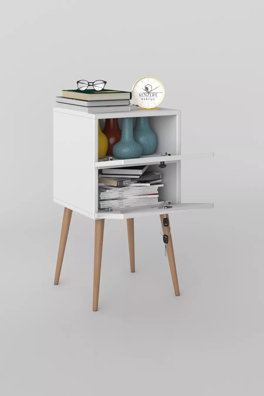Material: Particleboard Color: White Warranty Period: 2 Years Number of Drawers: Open Shelf Height: 74 cm Width: 39 cm Depth: 39 cm Style: Modern Theme / Style: Modern Feature: With Legs