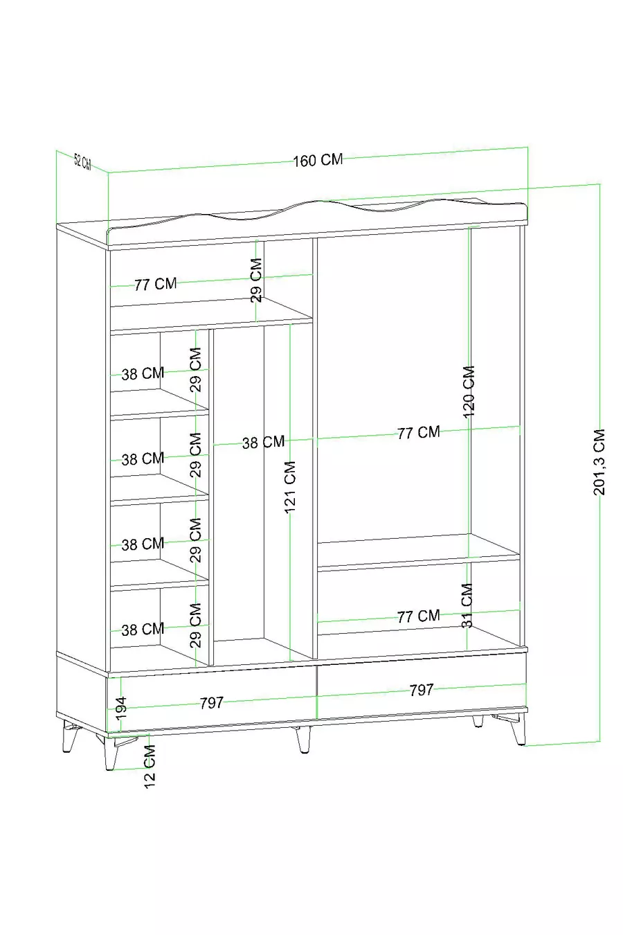 Function: Glass Cover Color: Brown Width: 160 cm Depth: 52 cm Number of Covers: 4 Body Material: Chipboard Mirror Function: Mirrored Warranty Period: 2 Years Style: Modern Theme / Style: Modern Country of Origin: TR Feature: With Drawer