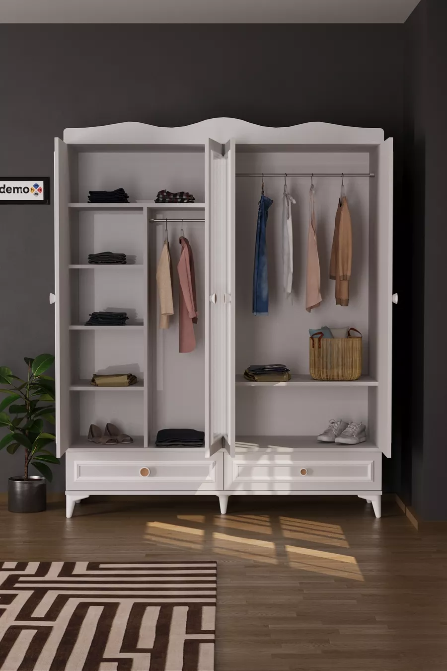 Function: Glass Cover Color: White Width: 160 cm Depth: 52 cm Number of Covers: 4 Body Material: Particleboard Mirror Function: Mirrored Warranty Period: 2 Years Style: Modern Theme / Style: Modern Origin: TR Feature: With Drawers