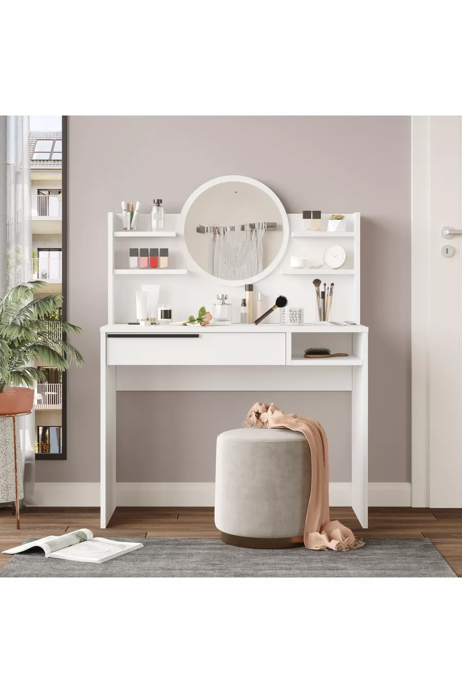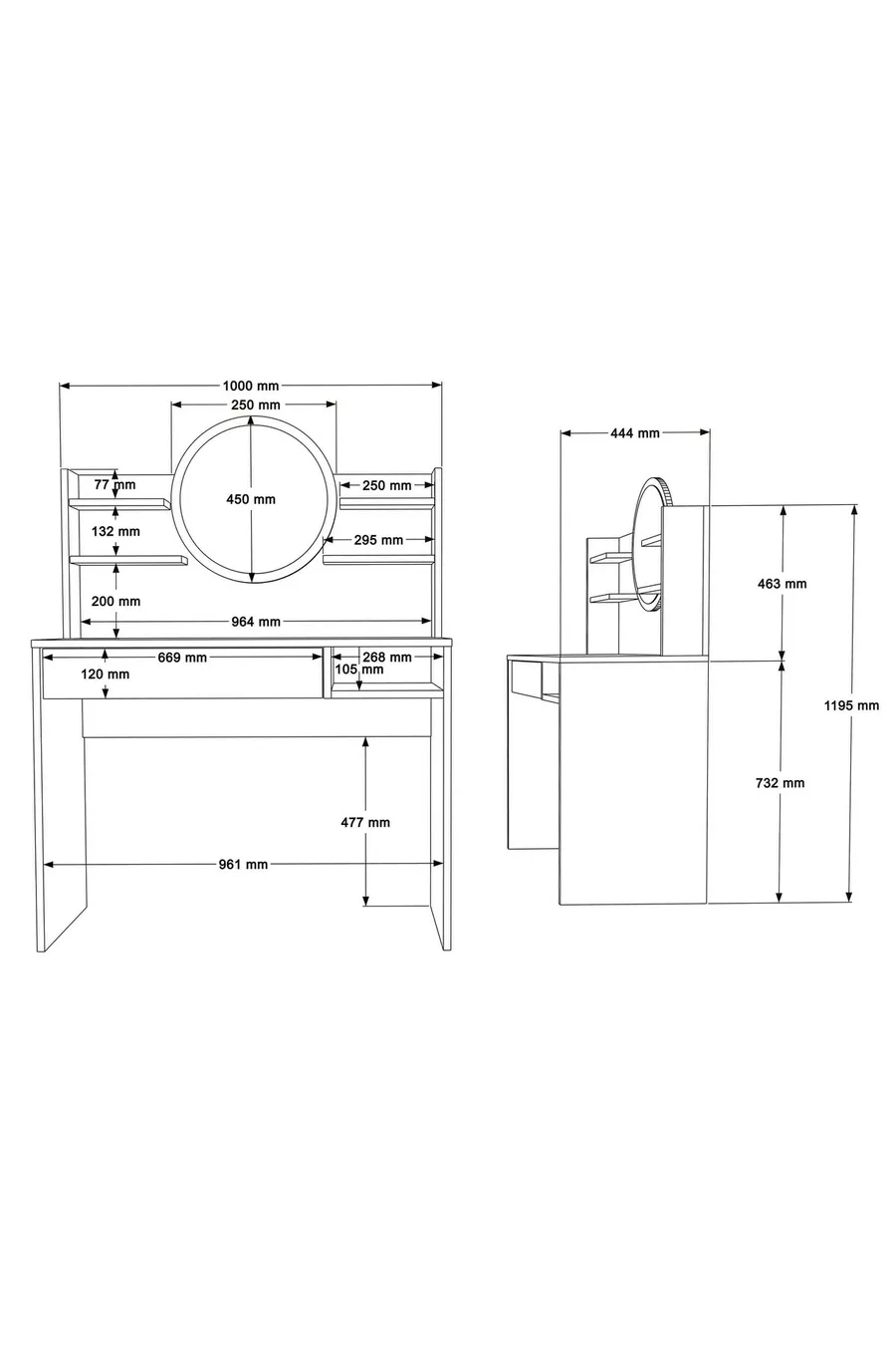 Material: Chipboard Feature: With legs Color: White Warranty Period: 2 Years Height: 75 cm Width: 100 cm Mirror Function: Mirrored Depth: 44 cm Style: Scandinavian Theme / Style: Scandinavian Origin: TR