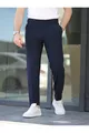 Material: Cotton - Elastane Fabric Type: Not specified Leg Type: Straight Leg Waist: High Waist Pattern: Solid Color: Navy Pockets: Double pockets Product Detail: Buttoned Collection: Basic Thickness: Medium Lining: Unlined Length: Regular Silhouette: Relaxed Occasion: Classic Fit: Slim Fit Additional Feature: Stretch Weave Type: Textured Persona: Office Print/Embroidery Technique: No print Belt/Strap Detail: With belt Sustainability Detail: No Washing Instructions: T09 Season: All Seasons Origin: TR Box Status: No box Closure Type: Full Button Closure