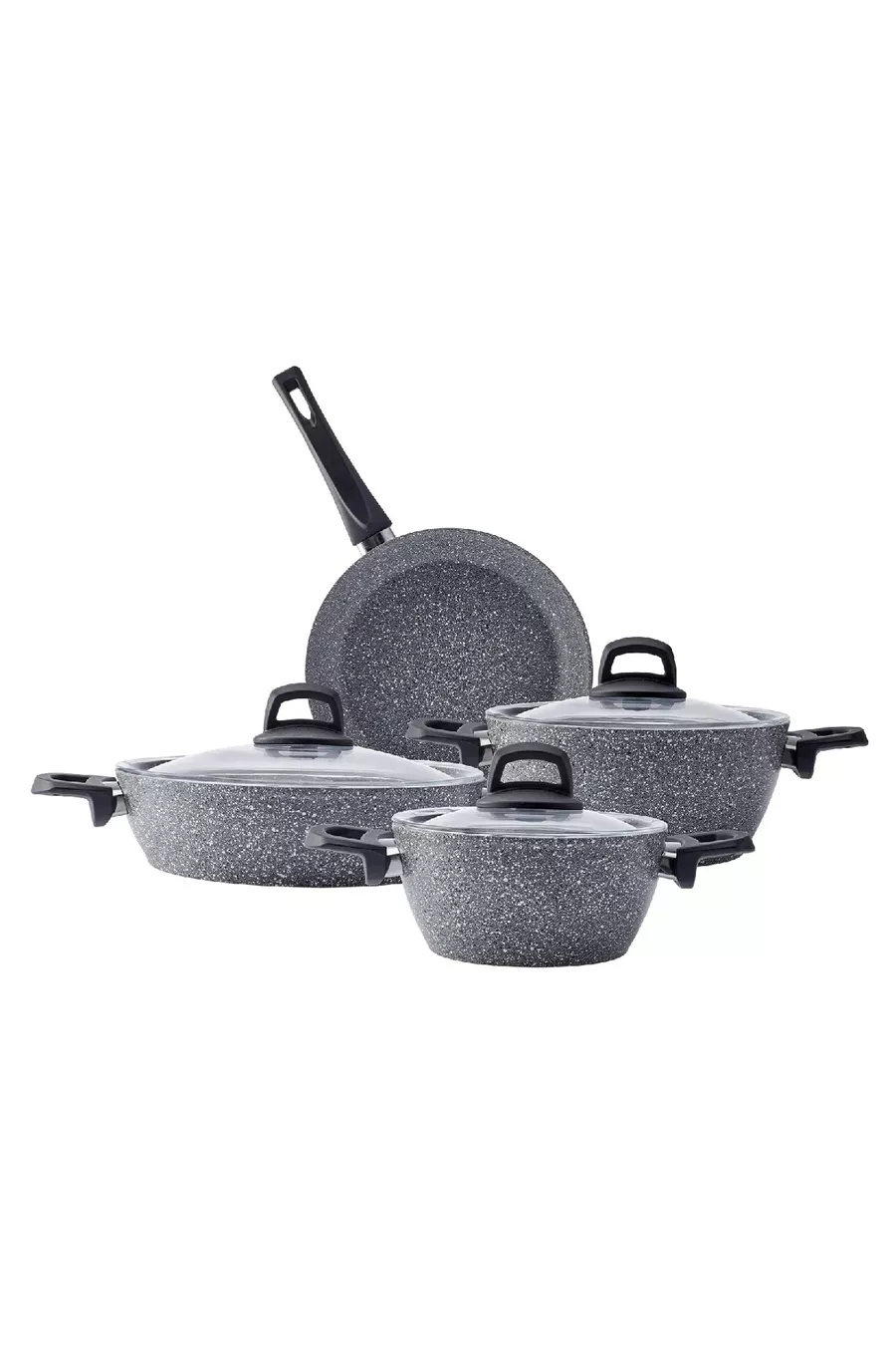 Color: Gray Feature: Not specified Exterior Material: Granite Interior Material: Granite Number of Pieces: 7 Care Instructions (Food Contact): Follow the product-specific care instructions to preserve the product's lifespan. Material: Granite