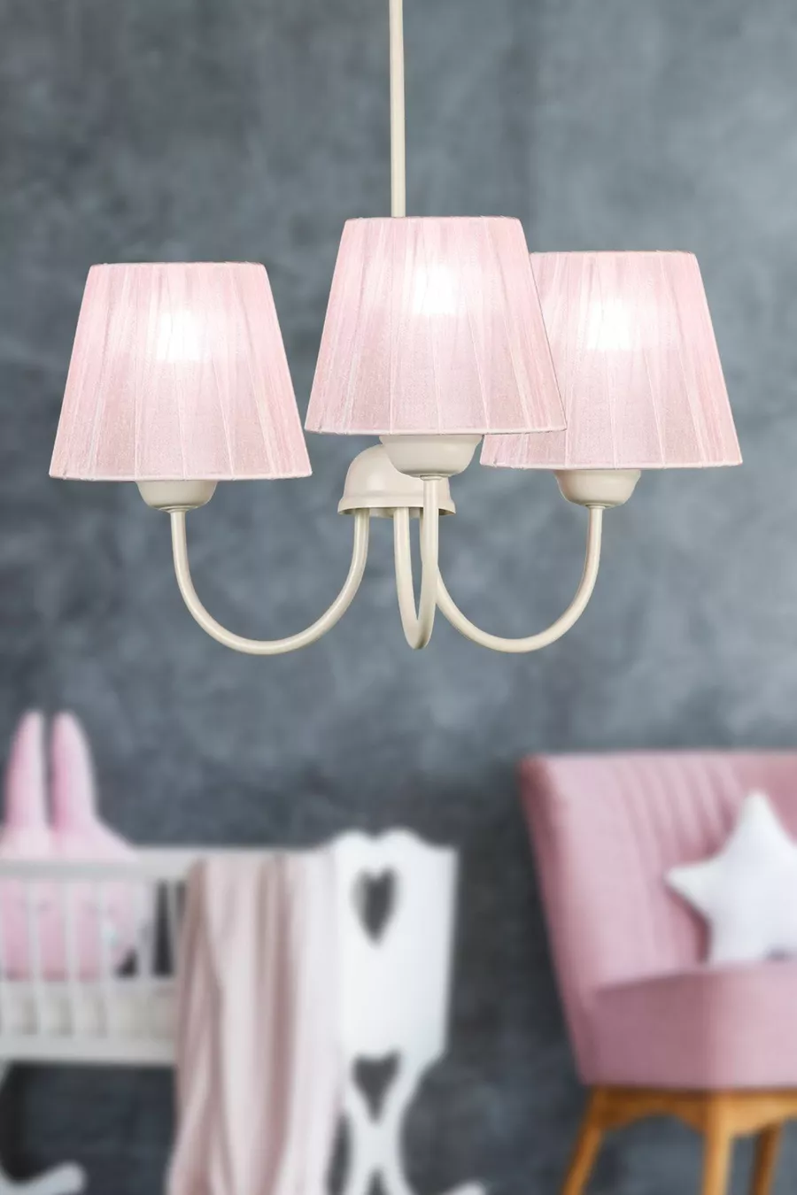 Ova 3-Light Chandelier White Light Pink Shade