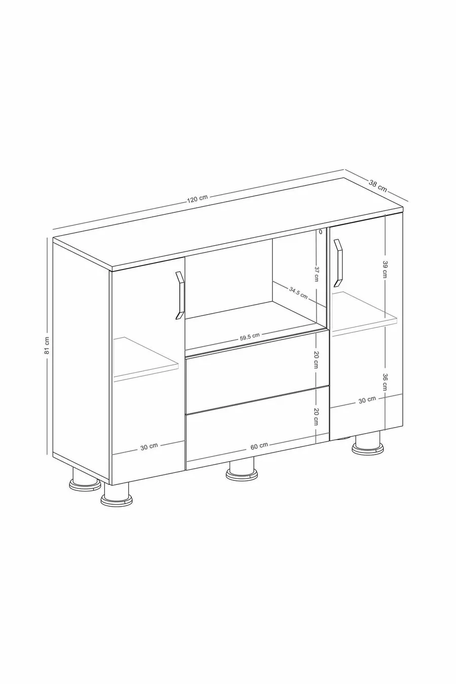 Material: Chipboard Number of Drawers: Multiple Color: White Model: Vertical Height: 80 cm Width: 120 cm Depth: 38 cm Warranty Period: 2 Years Style: Modern Theme / Style: Modern Origin: TR Feature: With Drawers