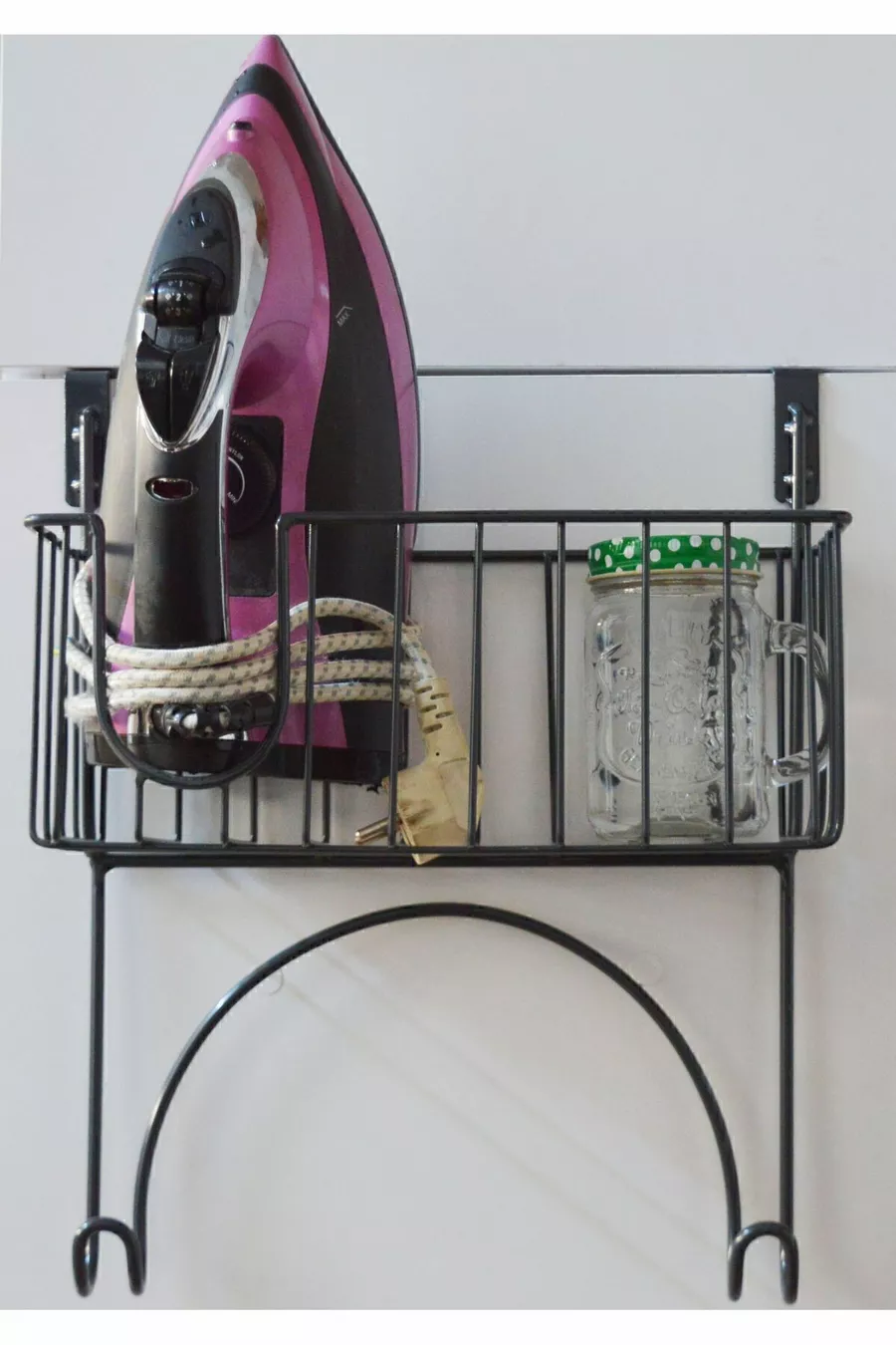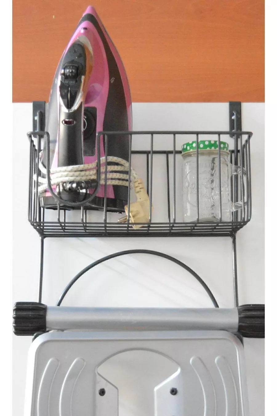 Over-the-Door Iron and Ironing Board Hanger Iron Organizer Shelf - Black