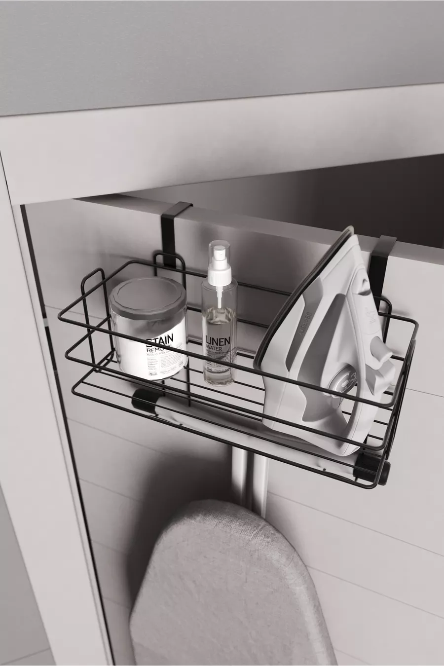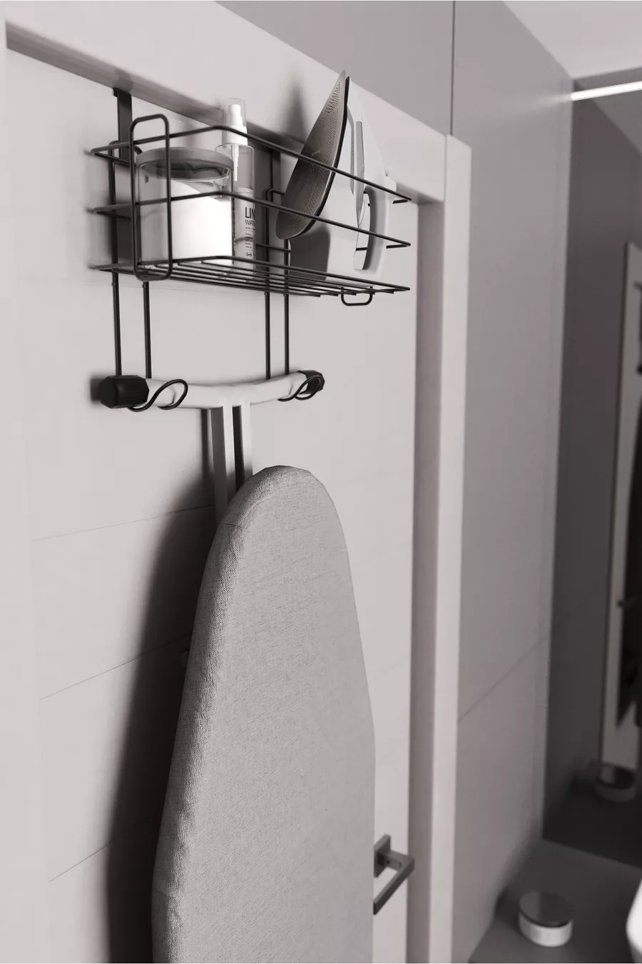 Over-the-Door Iron and Ironing Board Hanger Iron Organizer Shelf - Black