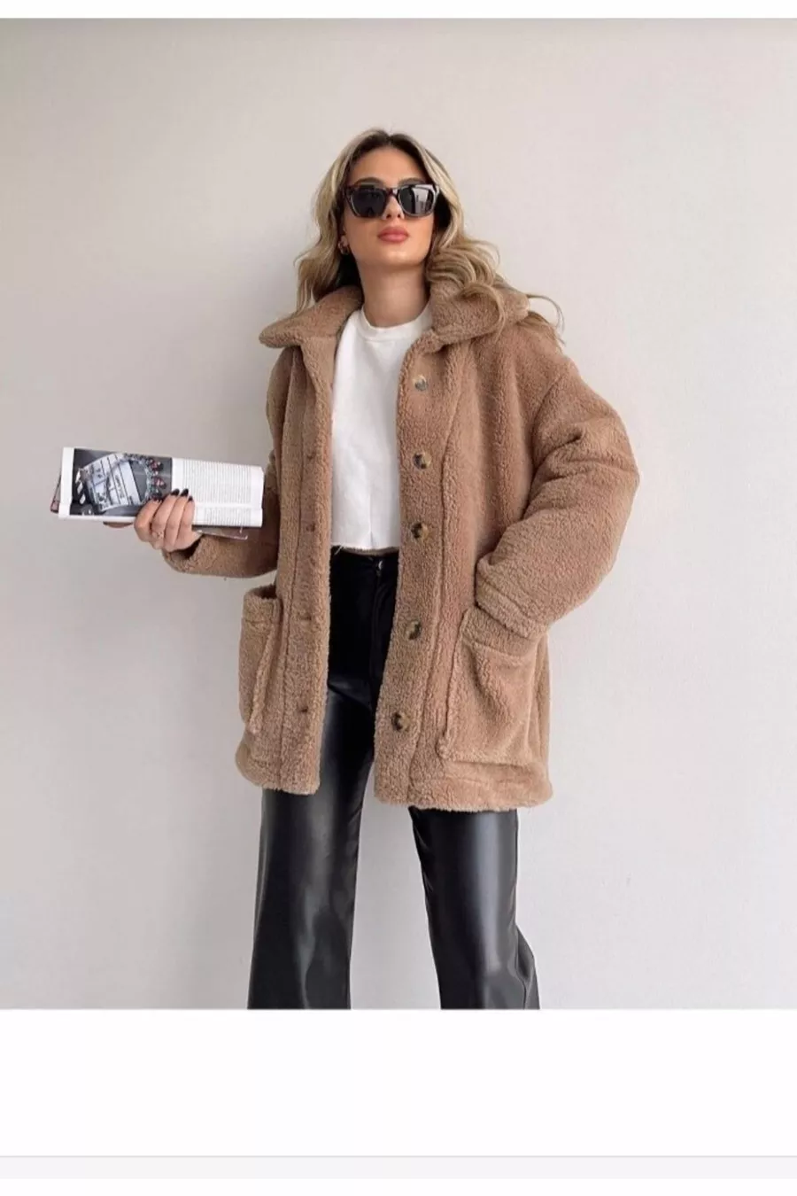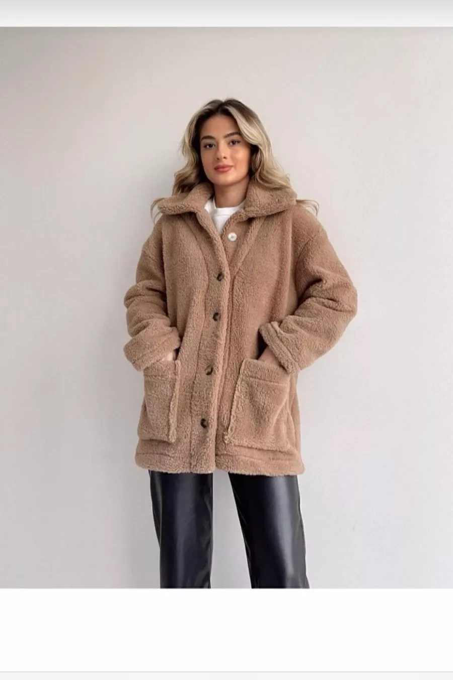 Sleeve Type: Long Sleeve Pattern: Plain Fit: Oversize Collar Type: Turn-down Collar Material: Woven Fabric Type: Knitted Color: Brown Closure Type: Buttoned Product Detail: Buttoned Pocket: Double pocket Sleeve Length: Long Collection: Basic Thickness: Thick Lining: Unlined Length: Long Silhouette: Basic Occasion: Casual Extra Feature: No Extra Feature Weave Type: Plush Sustainability Details: No Persona: Cool & Comfort Belt/Strap: Without Belt Product Type: Plain Material Composition: 50% Cotton, 50% Elastane Washing Instructions: Type 2 Season: Winter Origin: TR Box Condition: No box