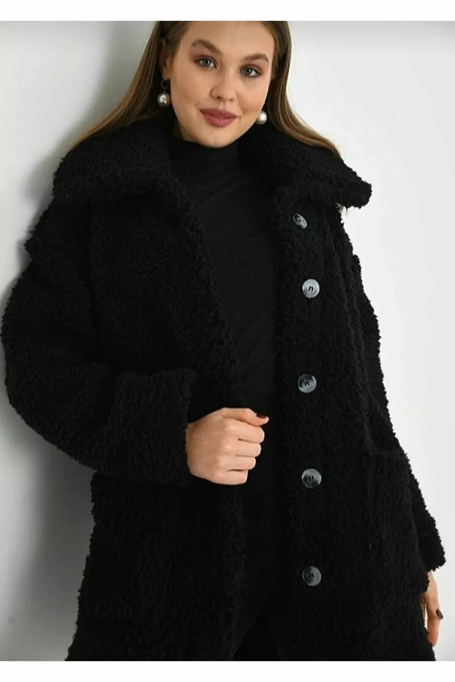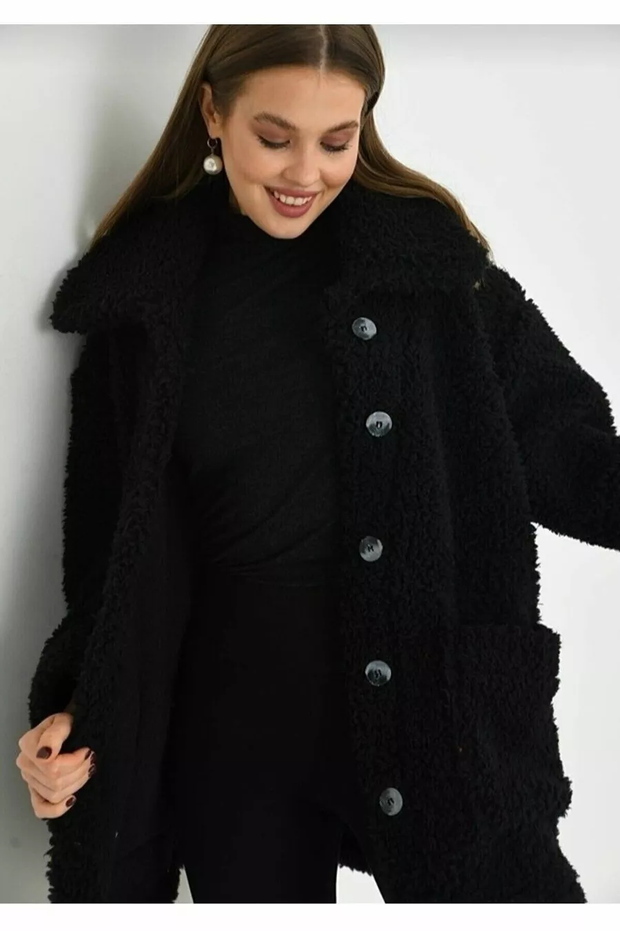 Sleeve Type: Long Sleeve Pattern: Plain Fit: Oversize Neck Type: Turn-down Collar Material: Woven Fabric Type: Knitted Color: Black Closure Type: Buttoned Product Detail: Buttoned Pocket: Double pocket Sleeve Length: Long Collection: Basic Thickness: Thick Lining Status: Unlined Length: Long Silhouette: Basic Occasion: Casual Additional Feature: No Additional Feature Weave Type: Plush Sustainability Detail: No Persona: Cool & Comfort Belt/Strap Status: Without Belt Product Type: Plain Material Composition: 50% Cotton, 50% Elastane Washing Instructions: Type 2 Season: Winter Origin: TR Box Status: No box