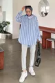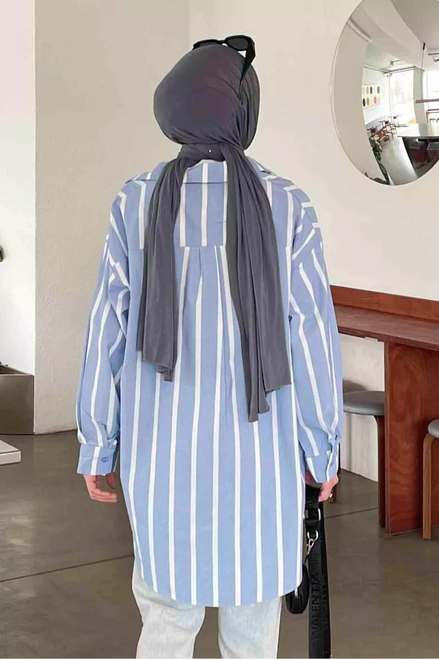 Collar Type: Shirt Collar Collection: Modest Clothing Fabric Type: Woven Sleeve Type: Standard Sleeve Pocket: No Pockets Pattern: Plain Fit: Oversize Color: Blue Product Details: Buttoned Sleeve Length: Long Material: Cotton Polyester Belt/Waistband: Without Belt Occasion: Casual/Daily Closure Type: Buttoned Length: Long Sustainability Detail: No Material Composition: Cotton Washing Instructions: T09 Silhouette: Oversize Origin: TR Box Condition: No Box