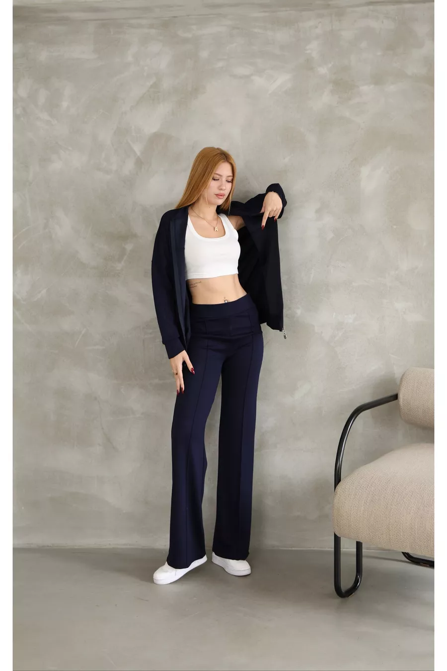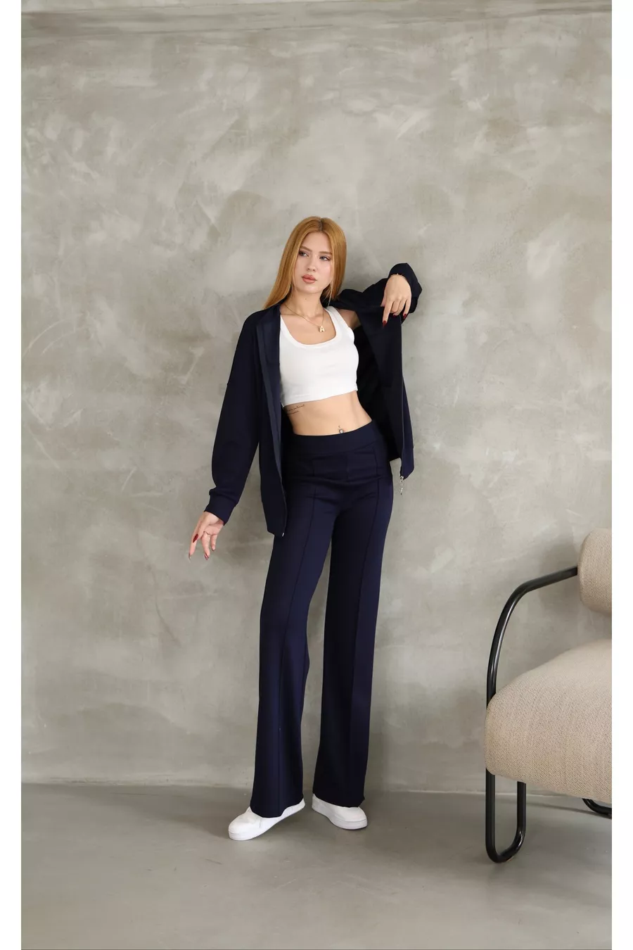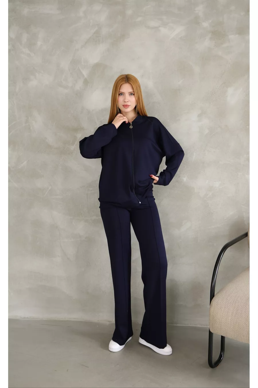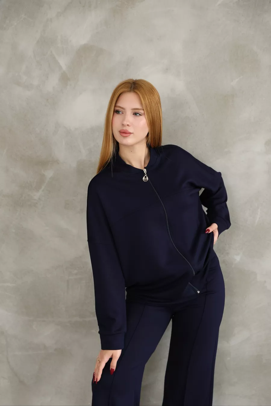 Oversized Zipper Sweatshirt and Wide-Leg Modal Fabric Tracksuit with Tape Details