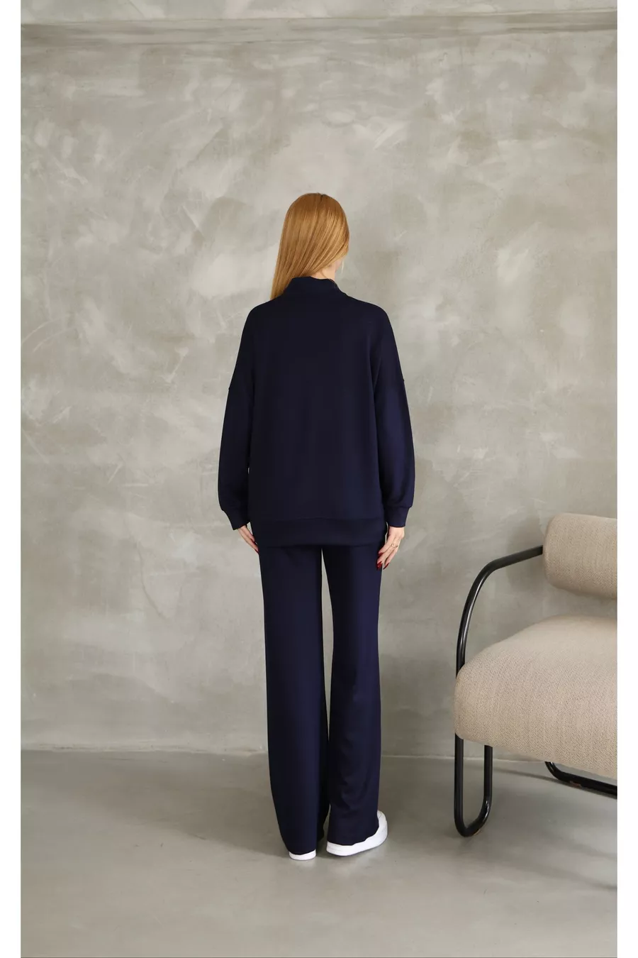 Additional Feature: Stretchy Material: Cotton Leg Length: Long Color: Navy Leg Type: Regular Sleeve Type: Long Sleeve Fabric Feature: Cold Weather Resistant Fit: Oversize Pattern: Solid Fabric Type: Woven Occasion: Casual/Everyday Material Composition: 60% POLYESTER 35% COTTON 5% LYCRA Washing Instructions: Type 1 Length: Long Sleeve Length: Long Neckline Type: Crew Neck Collection: Basic Sustainability Detail: No Origin: TR
