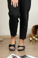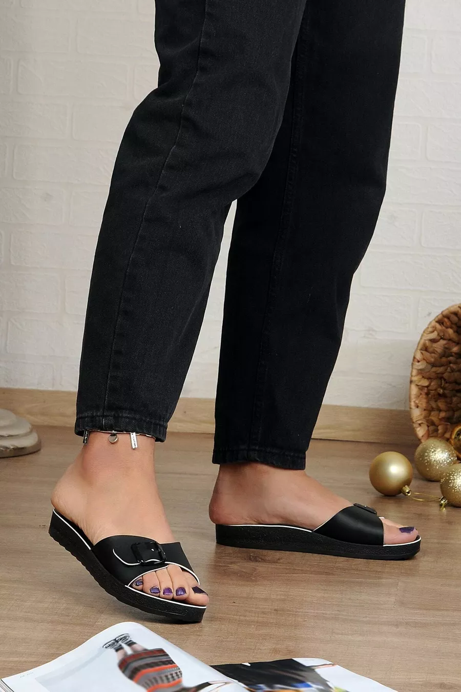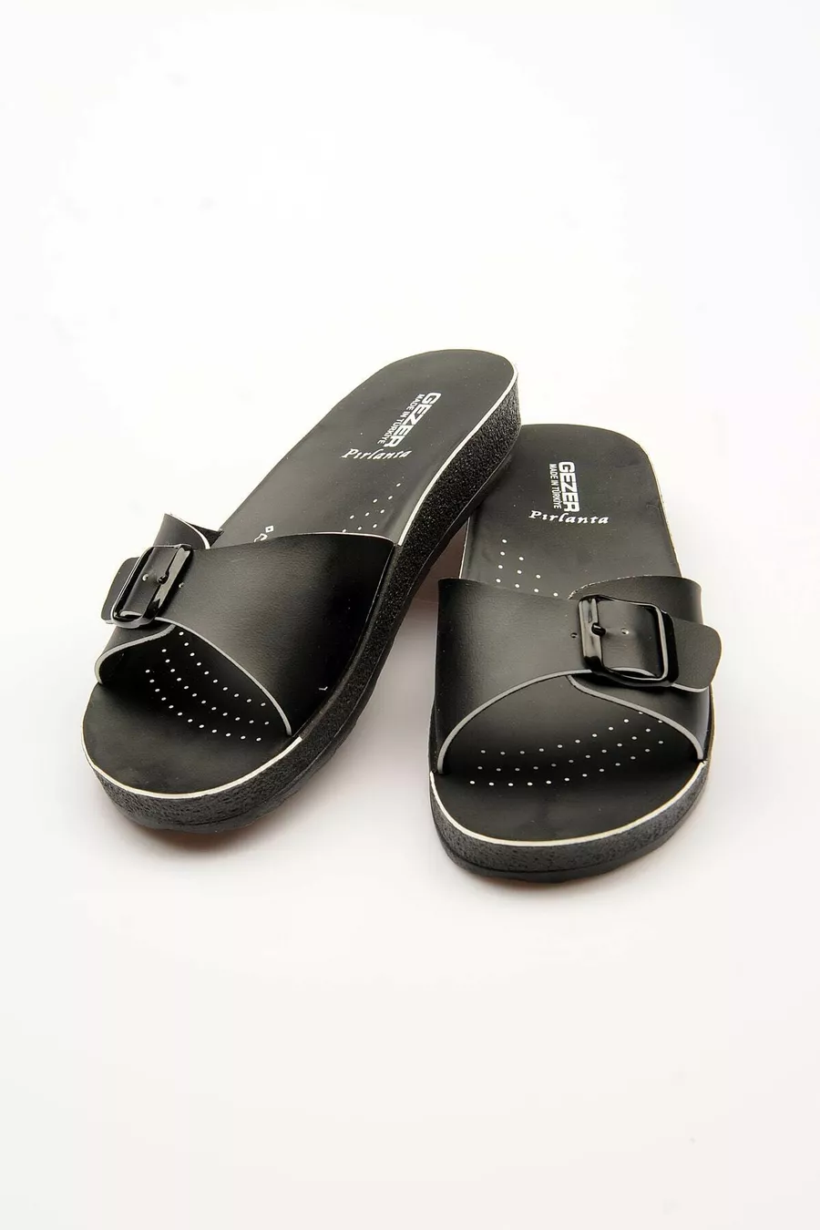 Material: Polyurethane Lining Material: Synthetic Leather Product Detail: Synthetic Leather Upper Material: Synthetic Leather Box Condition: No box Heel Type: Flat Heel Heel Height: Low Heel (1-4 cm) Color: Black Sole Material: EVA Insole Material: Synthetic Leather Sustainability Detail: No Additional Feature: Orthopedic Insole Material Composition: 90% Cotton, 10% Elastane Occasion: Chic/Evening Washing Instructions: Type 1 Pattern: Solid Fabric Type: Woven Collection: Homewear Package Content: 1 piece Origin: TR Outer Material: Synthetic Leather