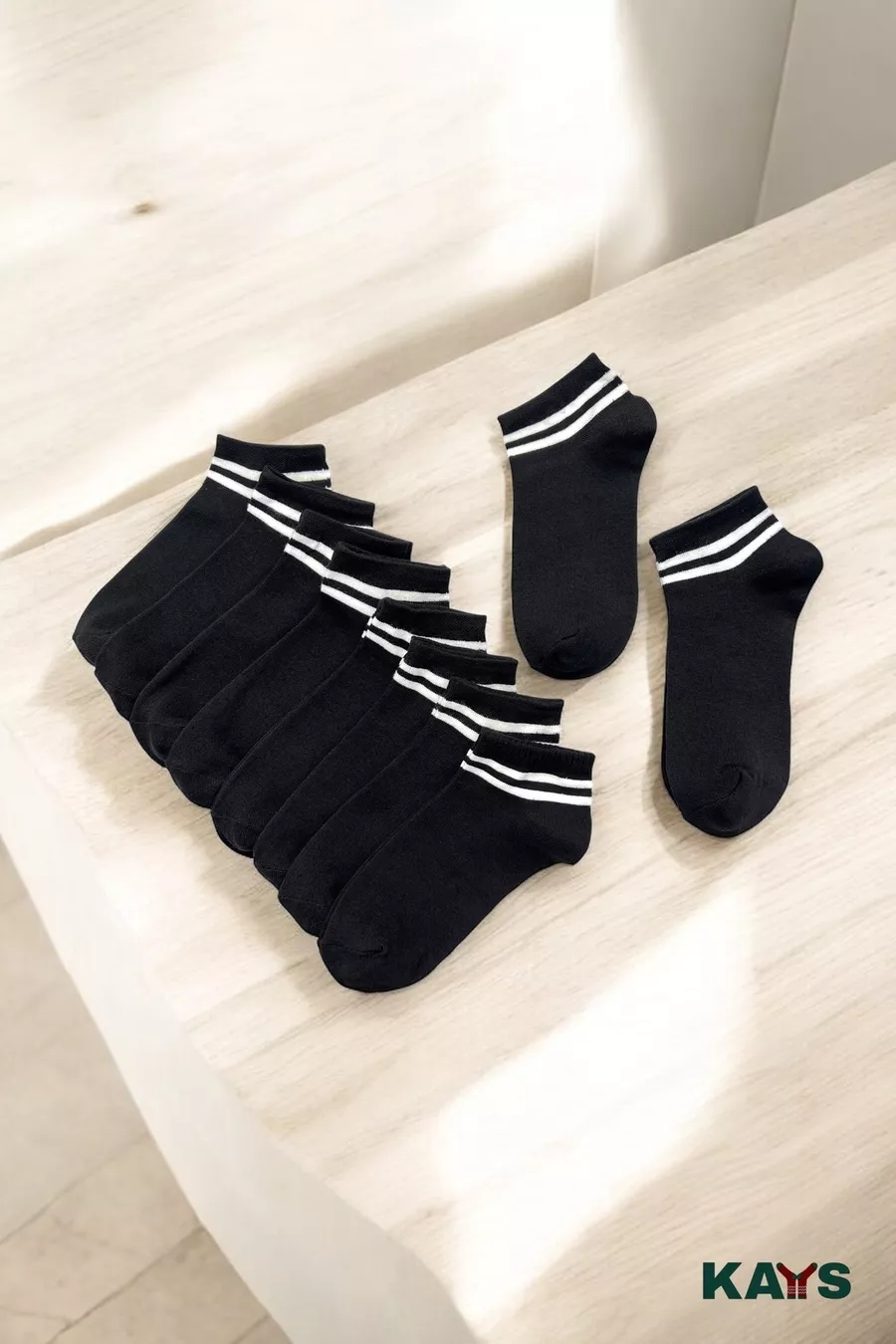 -Pack Economical Black Striped Ankle Socks for Men and Women