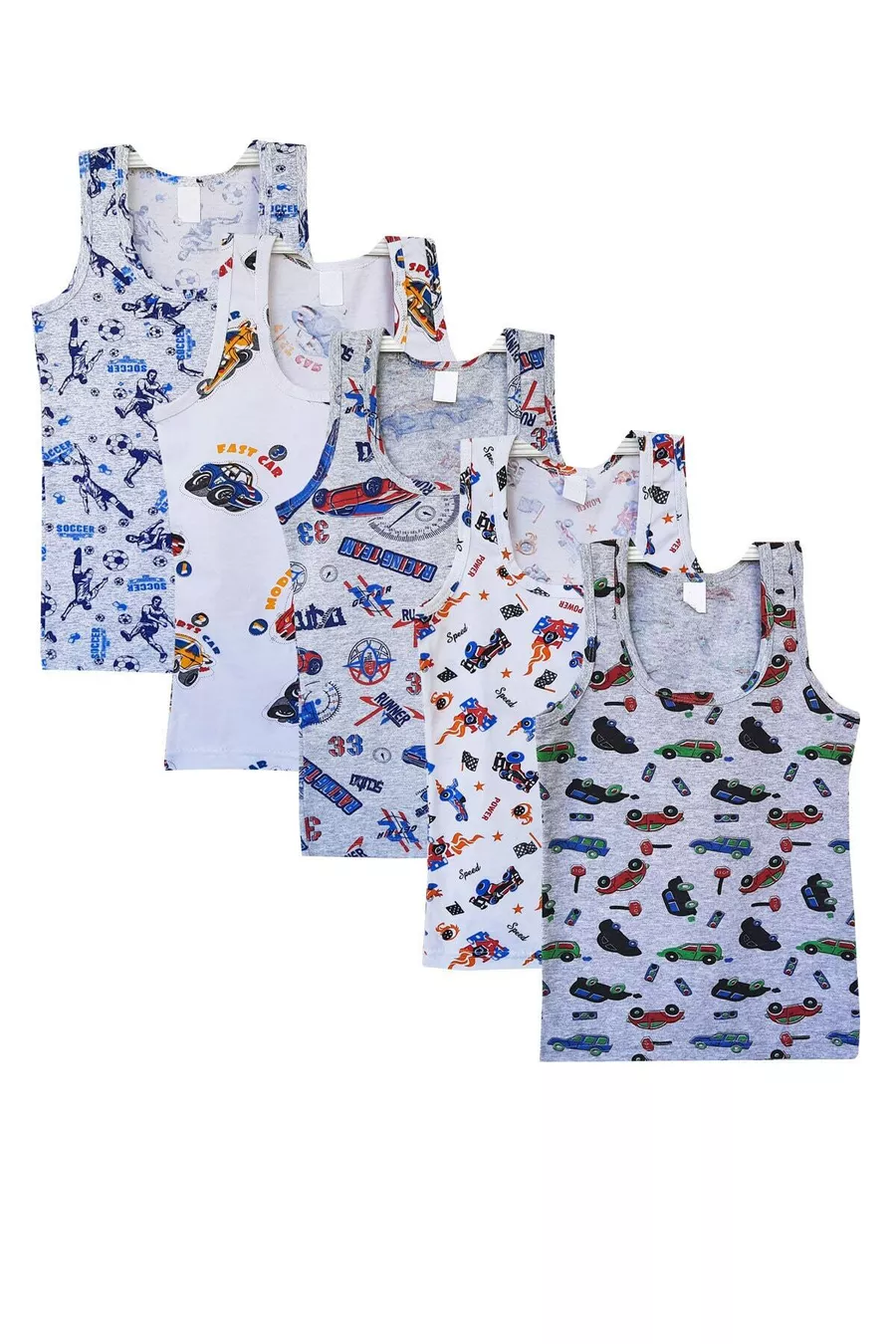 Pack of 5 Boys' Colorful Patterned Tank Tops % Cotton Cheerful