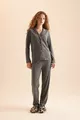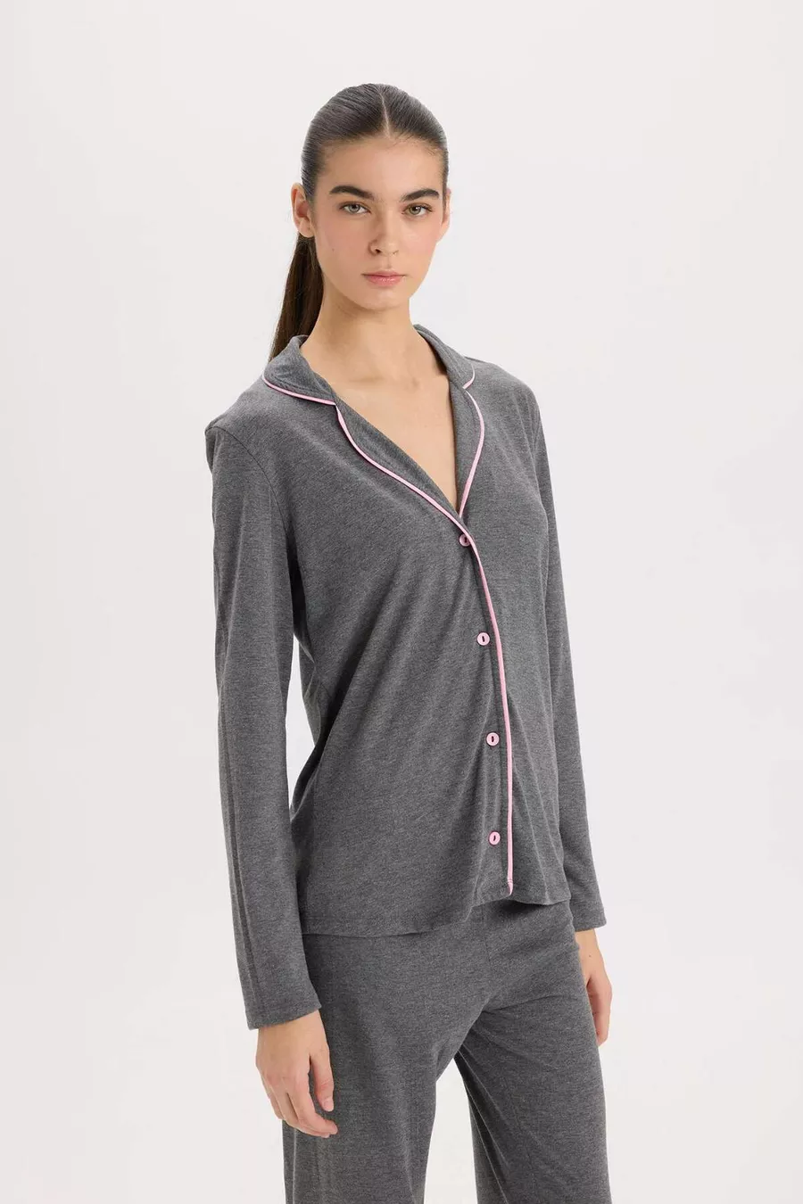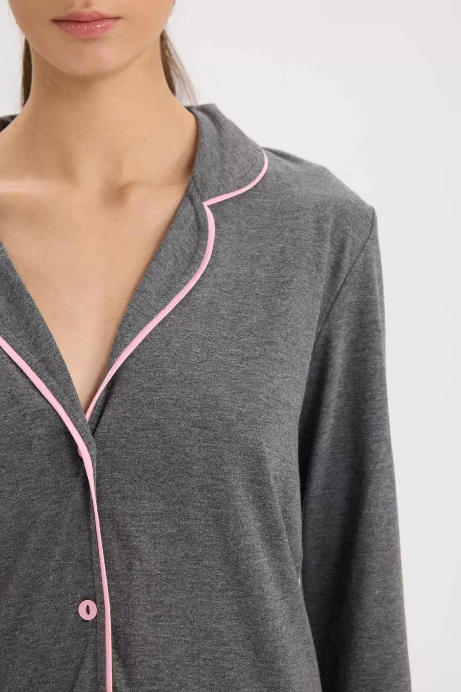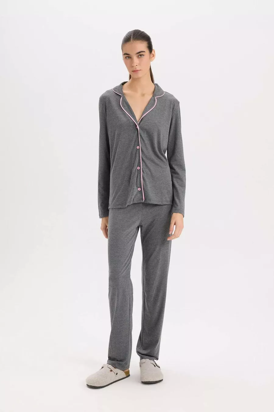 Sustainability Detail: No Sleeve Type: Standard Sleeve Pattern: Plain Collar Type: Shirt Collar Leg Length: Long Color: Grey Material: Polyester Blend Product Type: Plain Collection: Homewear Sleeve Length: Long Fit: Regular Fabric Type: Knitted Waist: Regular Waist Weave Type: Soft Number of Pieces: 2 Pieces Silhouette: Regular Setting: Lounge/Home Material Composition: 18% Cotton, 82% Polyester Washing Instructions: T09 Leg Type: Regular Package Contents: 2 Pieces Length: Full Length Origin: TR