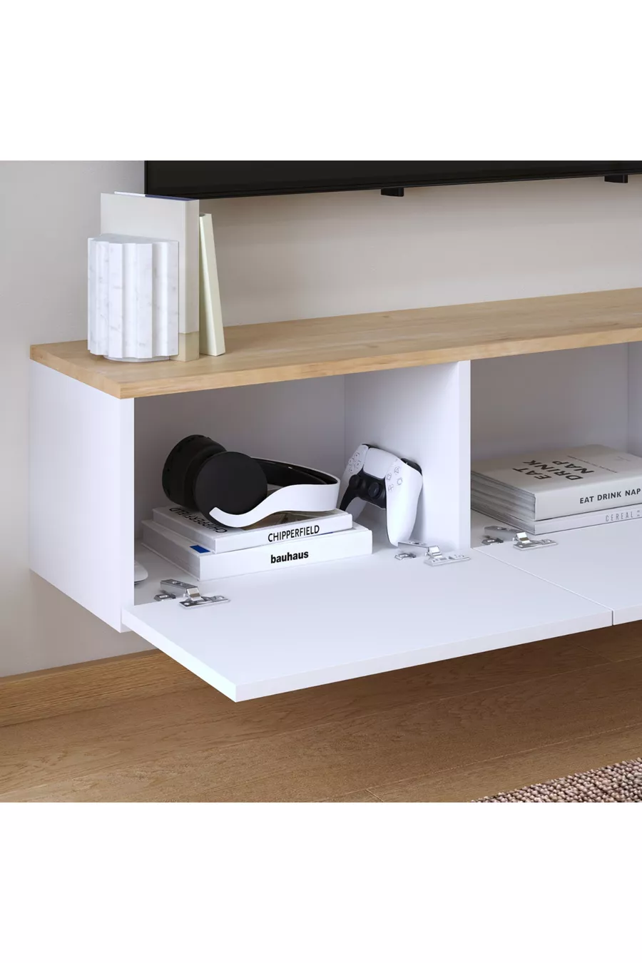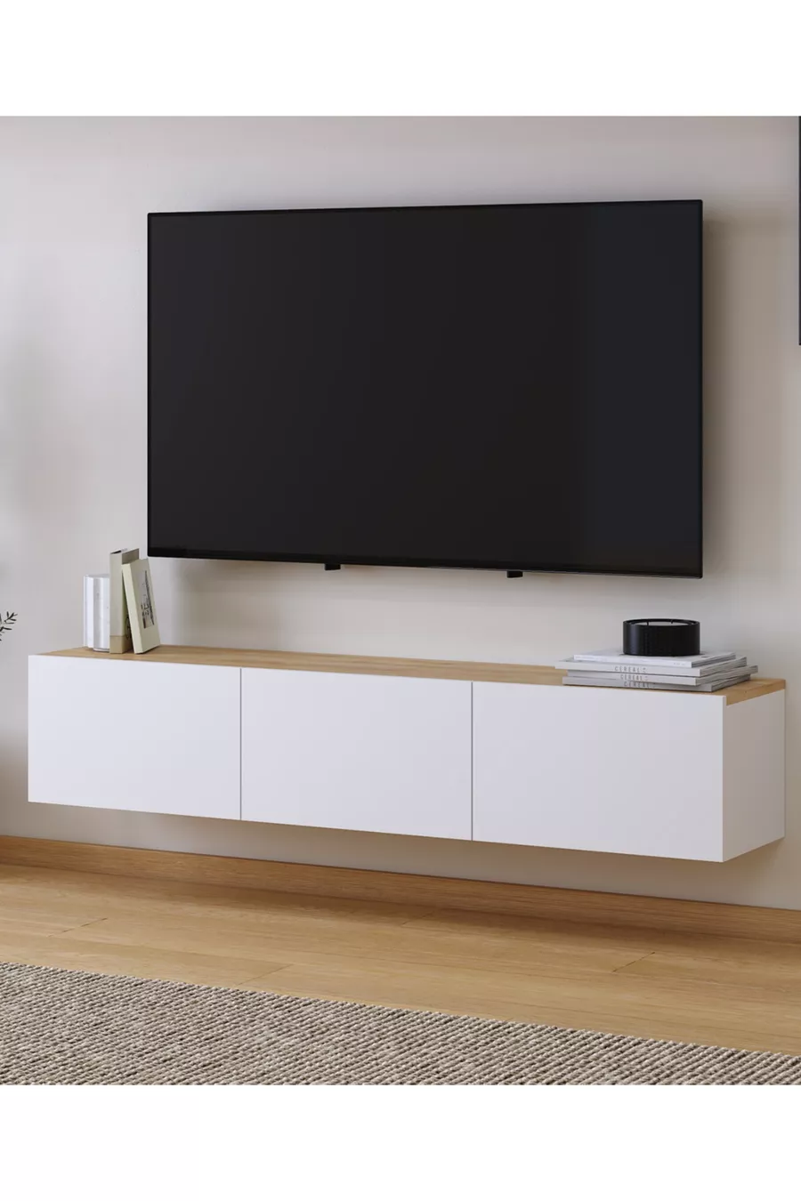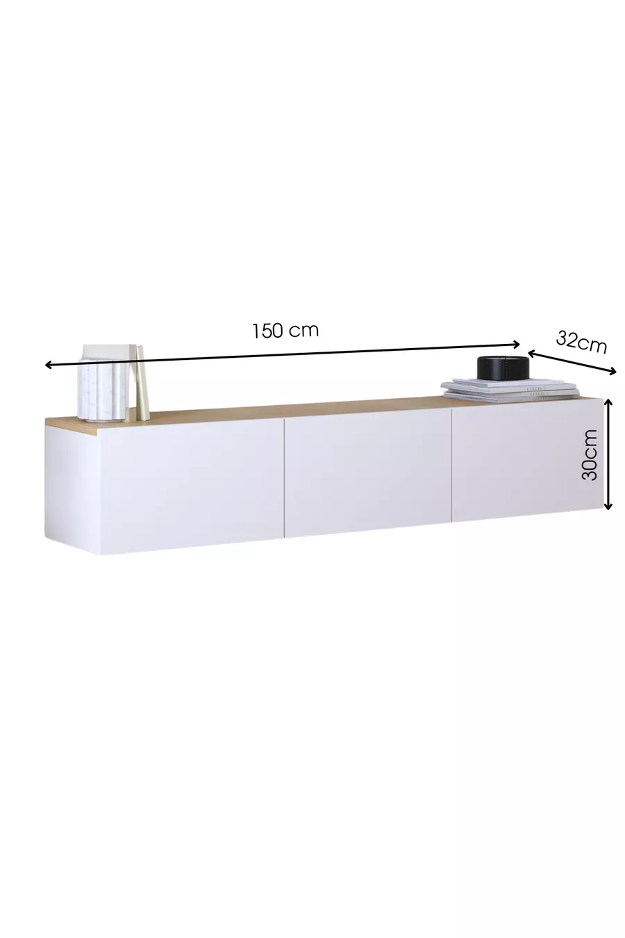 Material: Particleboard Feature: Wall Mounted Color: White Size/Dimension: 150 x 300 Height: 30 cm Width: 150 cm Depth: 32 cm Warranty Period: 1 Year Style: Modern Theme / Style: Modern Origin: TR