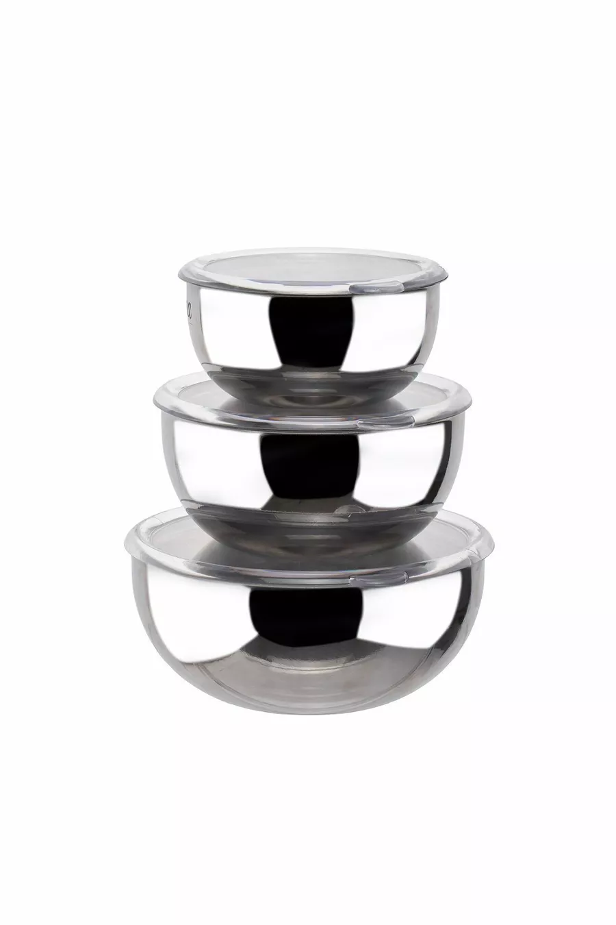 Parma 3-Piece Transparent Leak-Proof Lid Stainless Steel Mixing and Storage Bowl Set ( CM)