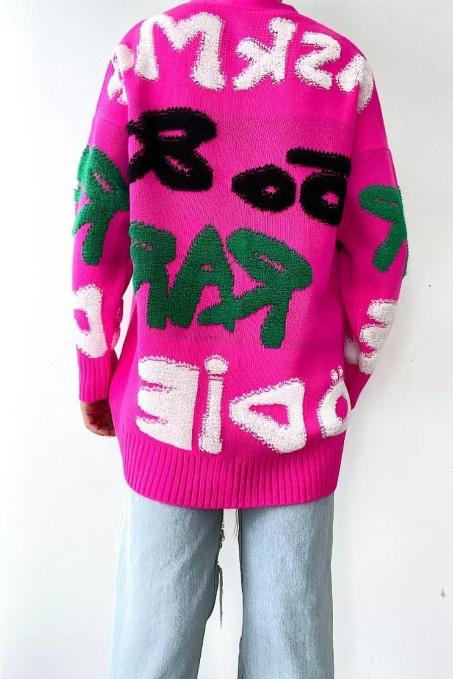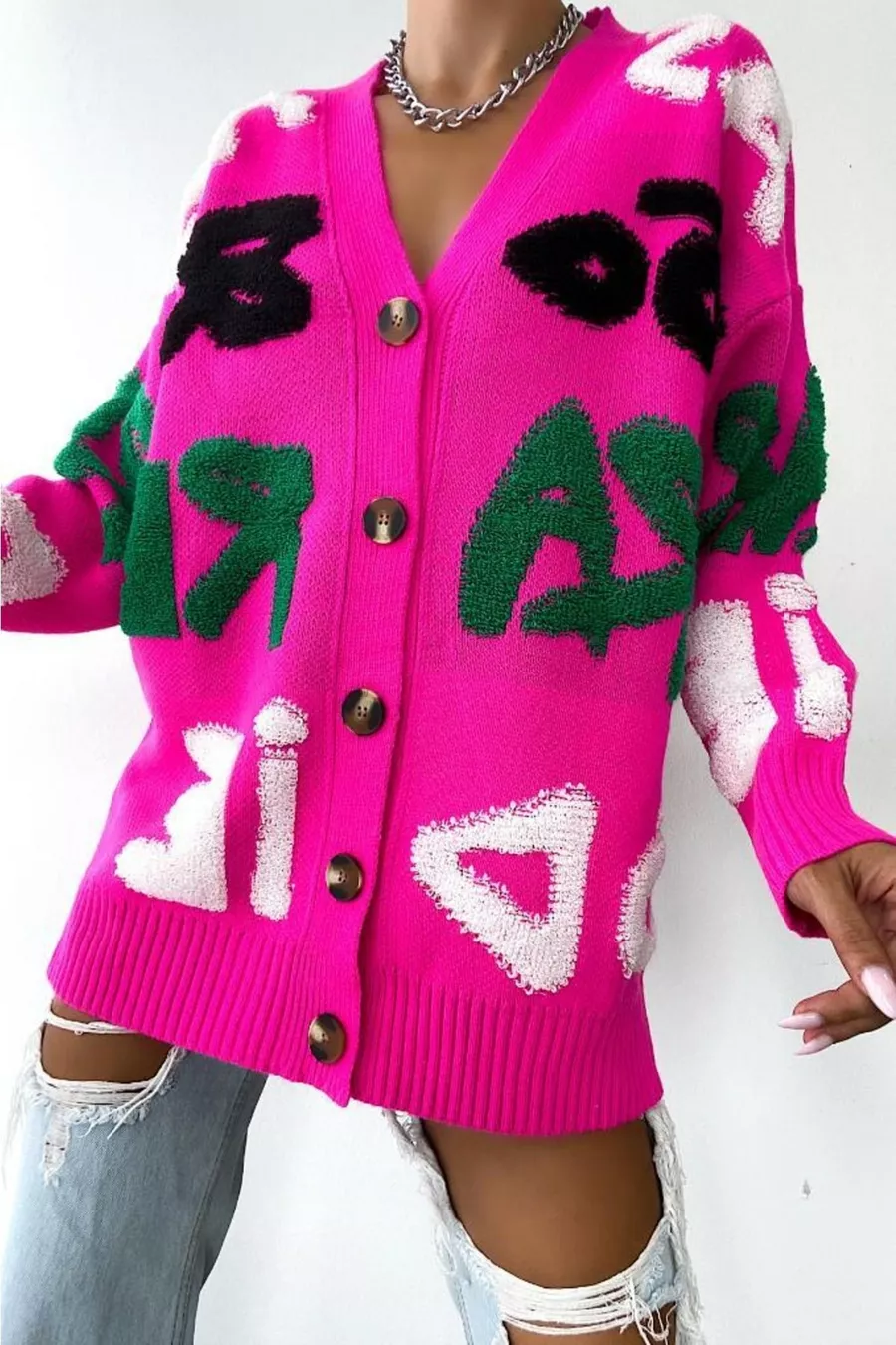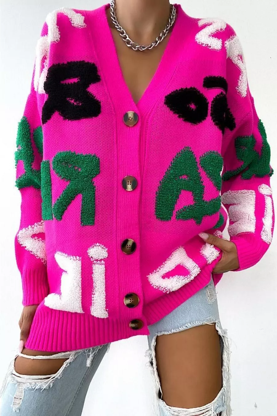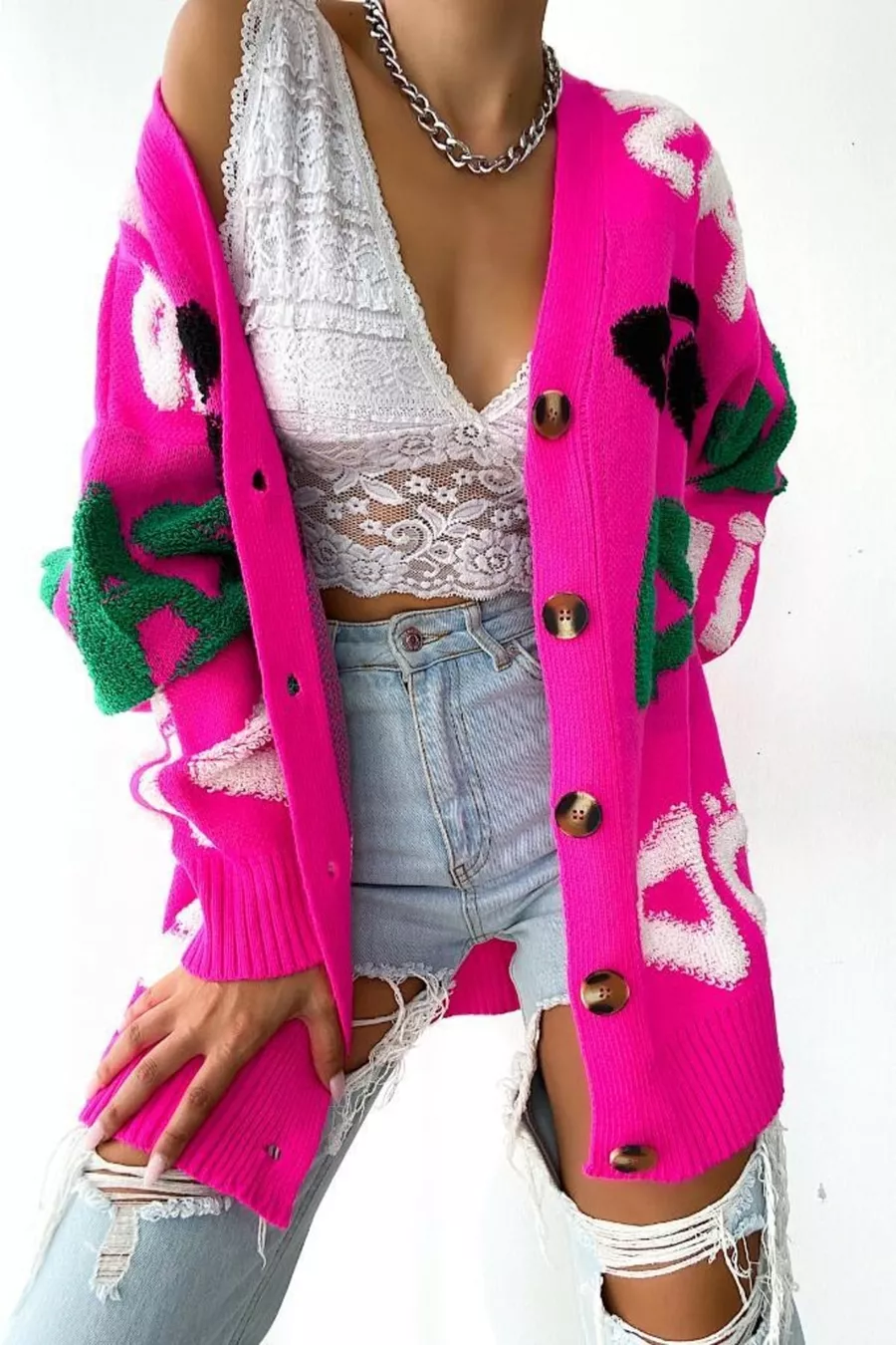 Material: Knitwear Sleeve Type: Long Sleeve Pattern: Patterned Fit: Plus Size Color: Pink Fabric Type: Woven Neck Type: V-Neck Product Type: Plain Pocket: No Pocket Sleeve Length: Long Collection: Plus Size Thickness: Thick Length: Regular Silhouette: Basic Occasion: Casual/Daily Additional Feature: No Additional Feature Print/Embroidery Technique: No Print Closure Type: Buttoned Number of Pieces: 1 Sustainability Detail: No Weave Type: Faux Knit Belt/Strap Status: Without Belt Material Composition: 100% Viscose Washing Instructions: Type 1