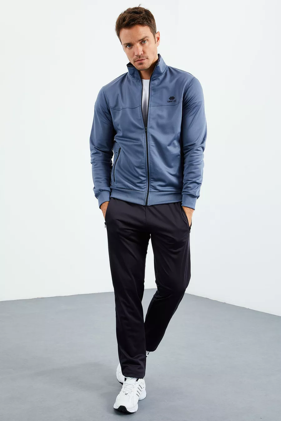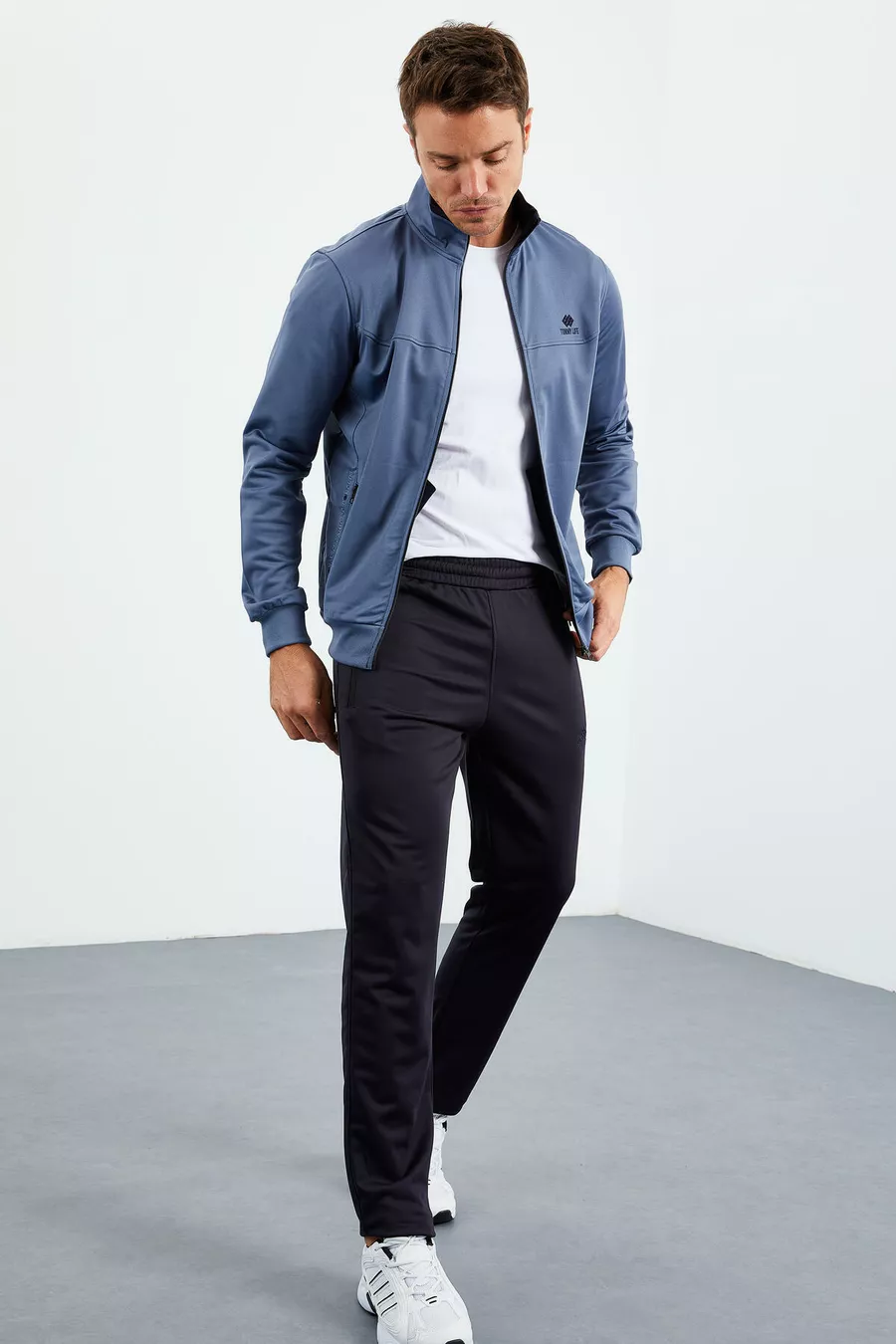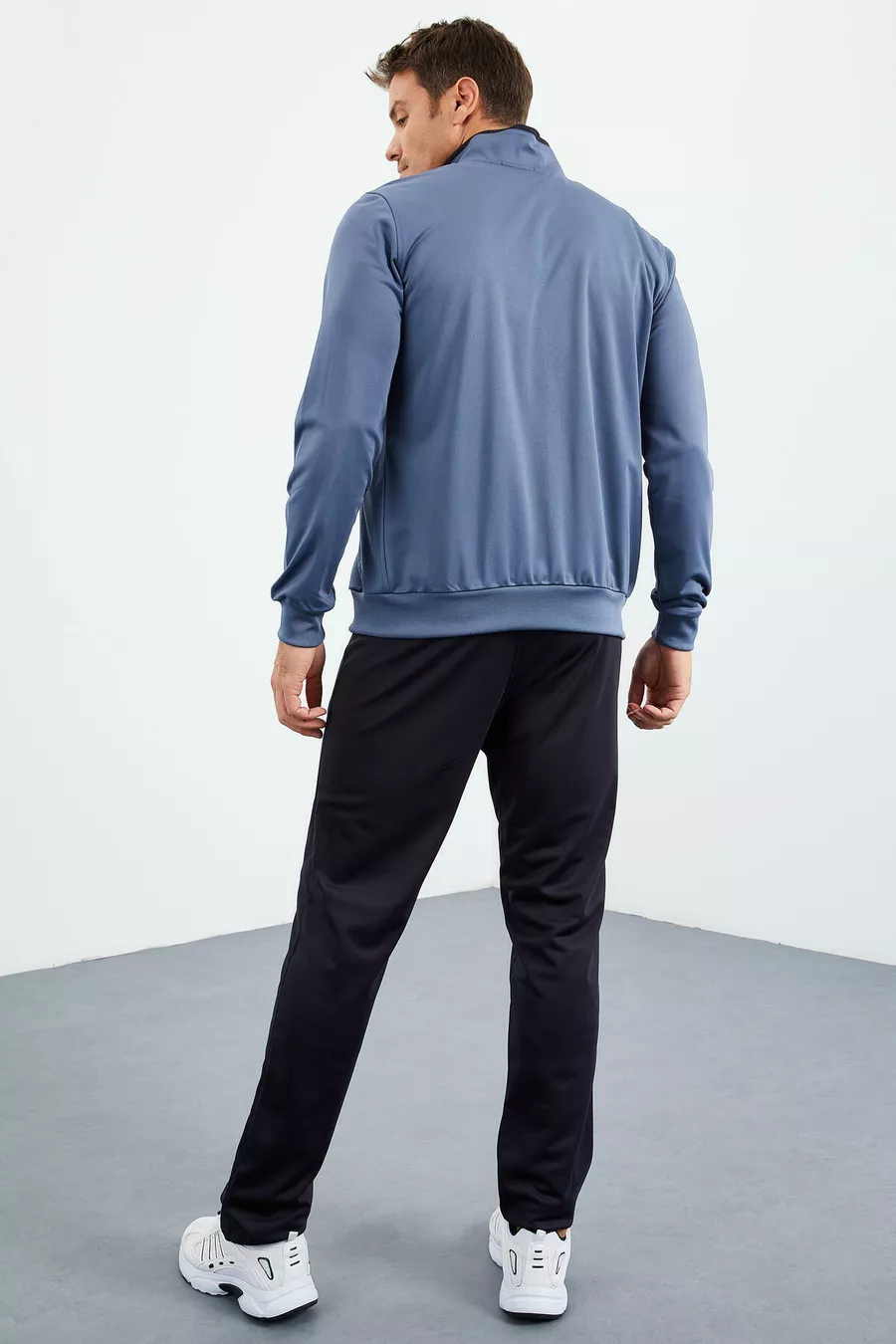 Petrol - Navy Blue High Collar Zipper Standard Fit Classic Leg Men's Tracksuit -