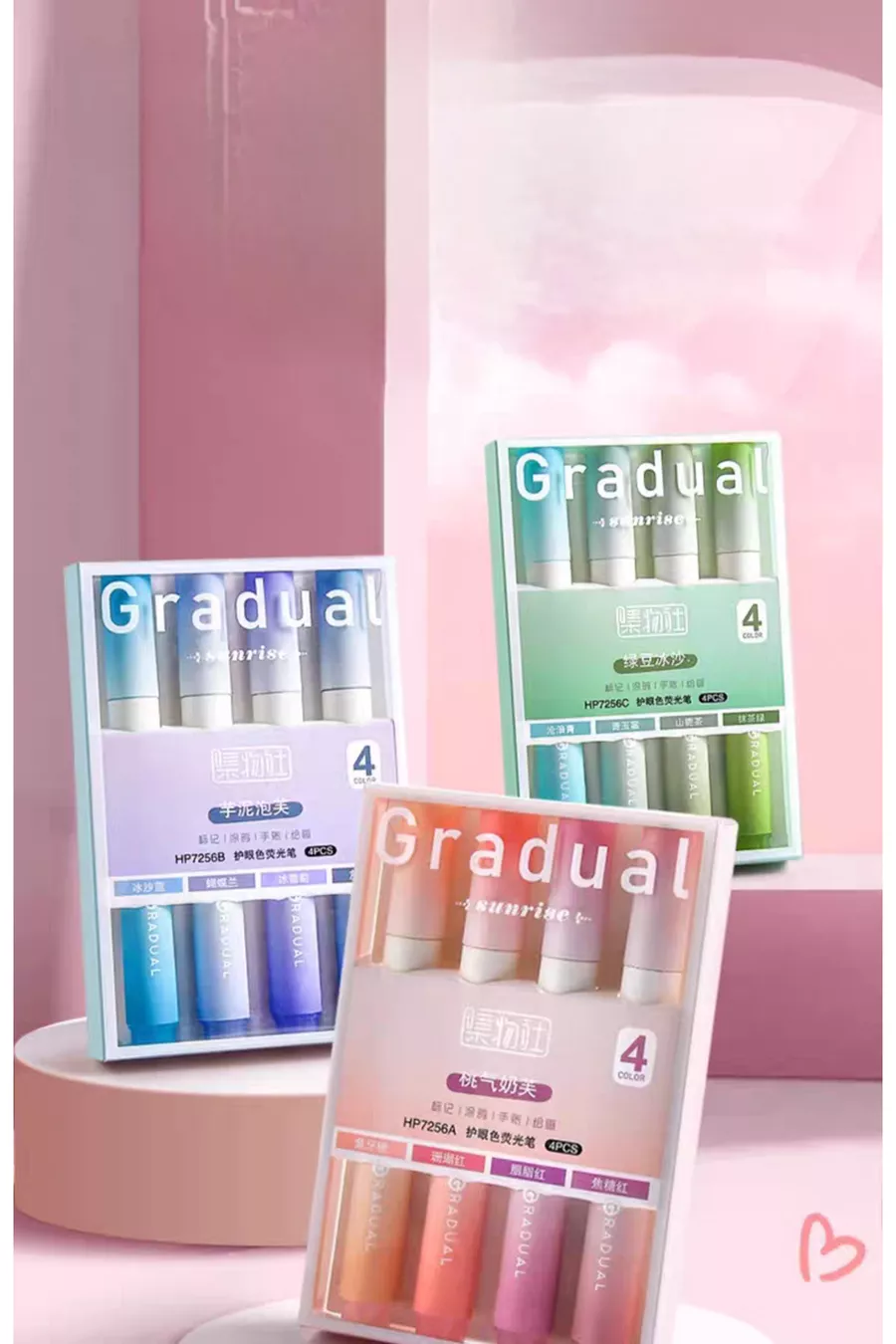 -Piece Gradual Highlighter Pen Set Soft Colors 4-Pack