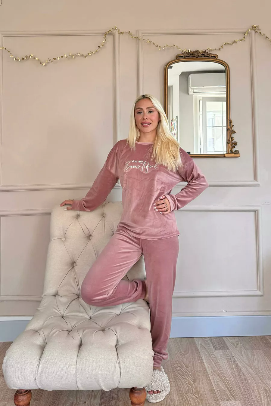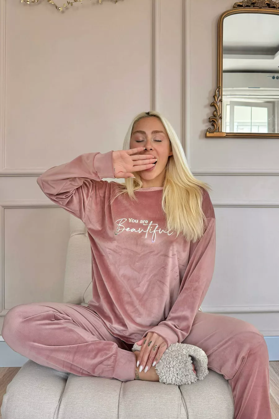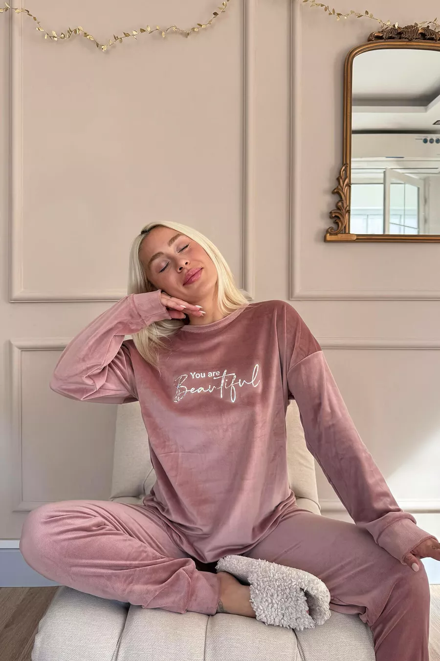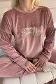 Sustainability Detail: No Sleeve Type: Long Sleeve Pattern: Patterned Neck Type: Crew Neck Pant Length: Long Color: Pink Material: Polyester Product Type: Printed Product Detail: Elastic Collection: Homewear Top-Bottom Set: Sweatshirt-Pants Sleeve Length: Long Technique: None Fit: Regular Fabric Type: Knitted Waist: Regular Waist Weave Type: Velvet Number of Pieces: 2 Pieces Silhouette: Regular Persona: Cool & Comfort Occasion: Lounge/Home Additional Feature: No Additional Feature Material Composition: 100% Polyester Washing Instructions: T44 Pant Type: Cuffed Pant Package Contents: Single Height: Regular Season: Winter