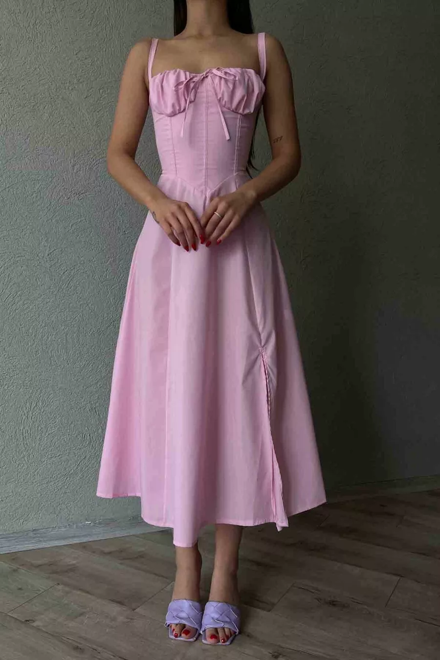 This product will be shipped by \xa0 Quenmadam\xa0. There are less than 5 stocks to be sold at the campaign price. The seller determines the sales price of the product you have examined. A product can be sold by more than one seller. The sellers of the products offered for sale by more than one seller are ranked according to the price they set for the product, the seller ratings, the delivery status, the promotions in the products, whether the shipping is free or not, and whether the products can be delivered with fast delivery, the stock and categories of the products. A maximum of \xa010 pieces of this product can be ordered.\xa010 units can be ordered by Queenmadam.\xa0This limit is not valid for corporate orders, and different limits can be set for corporate orders. Free returns within 15 days. Click \xa0 for more information. Product Details Corset Detailed Thin Strap Dress Fabric Content 65% Cotton 35% Polyester Model Sizes Model Height: 168 cm Model Weight: 54 kg Model Chest: 80 cm Model Waist: 65 cm Model Hips: 95 cm Product Dimensions Sample Size: S Unlined Product Length: 120 cm