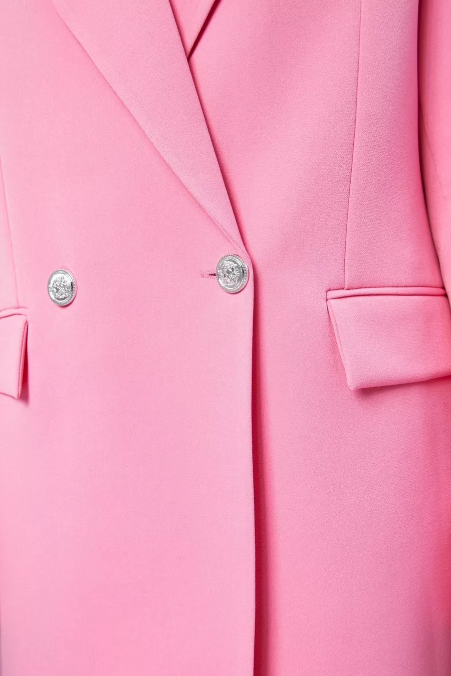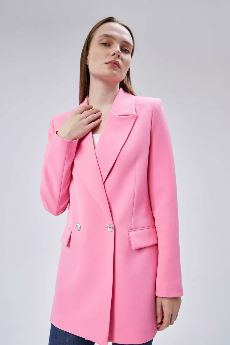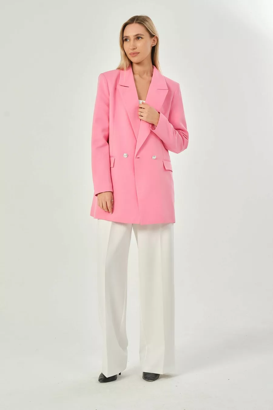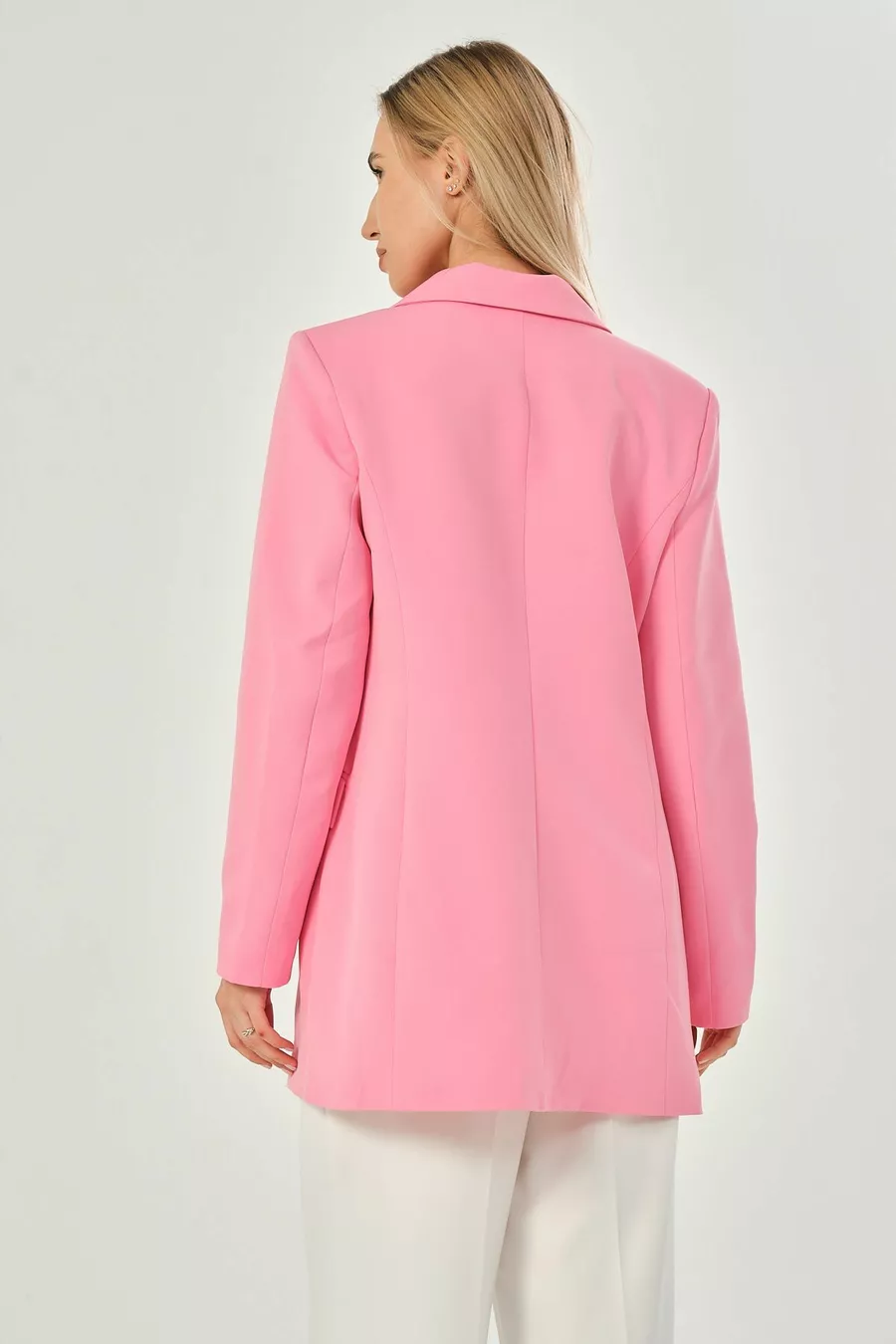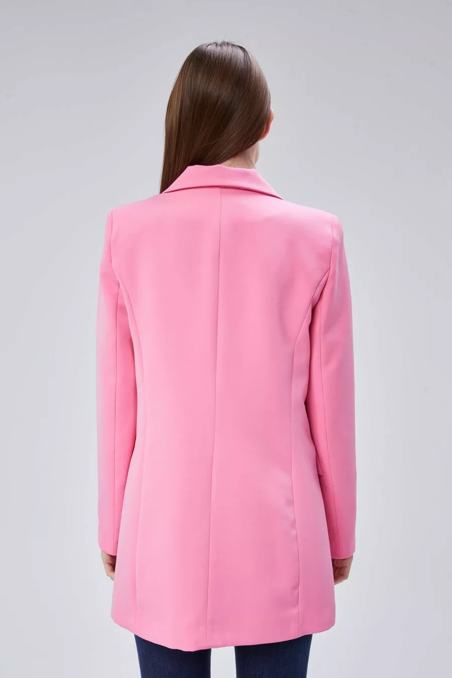 Color: Pink Material: Polyester Blend Fabric Type: Woven Length: Long Fit: Oversize Occasion: Casual/Daily Pattern: Solid Neck Type: Wrap Sleeve Length: Long Sleeve Type: Long Sleeve Collection: Basic Weave Type: Plain Weave Additional Feature: No Additional Feature Persona: Fashion Forward Material Composition: 86% Polyester, 14% Elastane Washing Instructions: It is recommended to follow the washing instructions. Dry cleaning is suitable. Sustainability Detail: No Belt/Strap Status: Without Belt Lining Status: Lined Silhouette: Wrap Season: All Seasons Origin: TR Closure Type: Half Placket Button