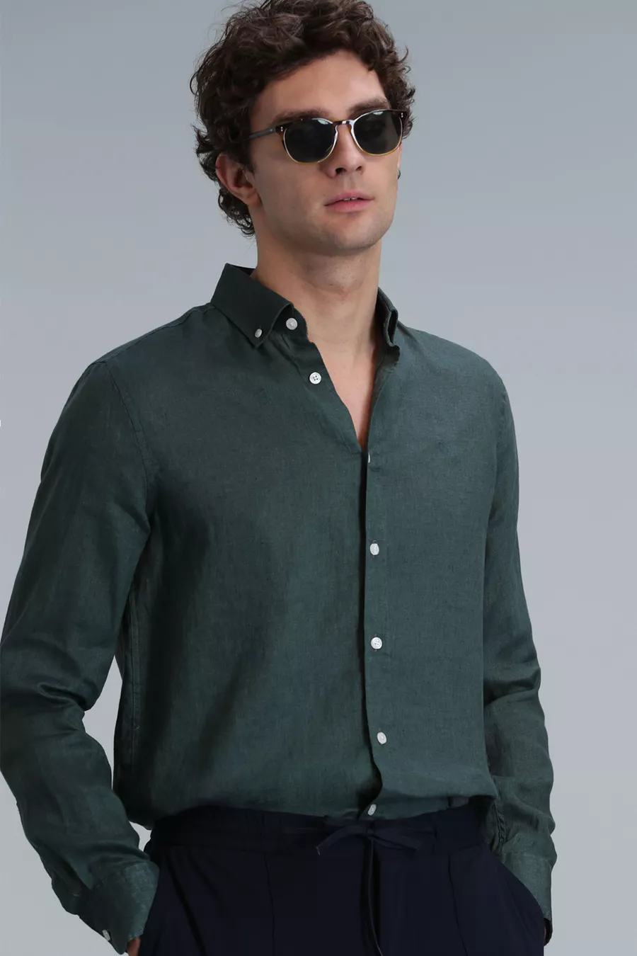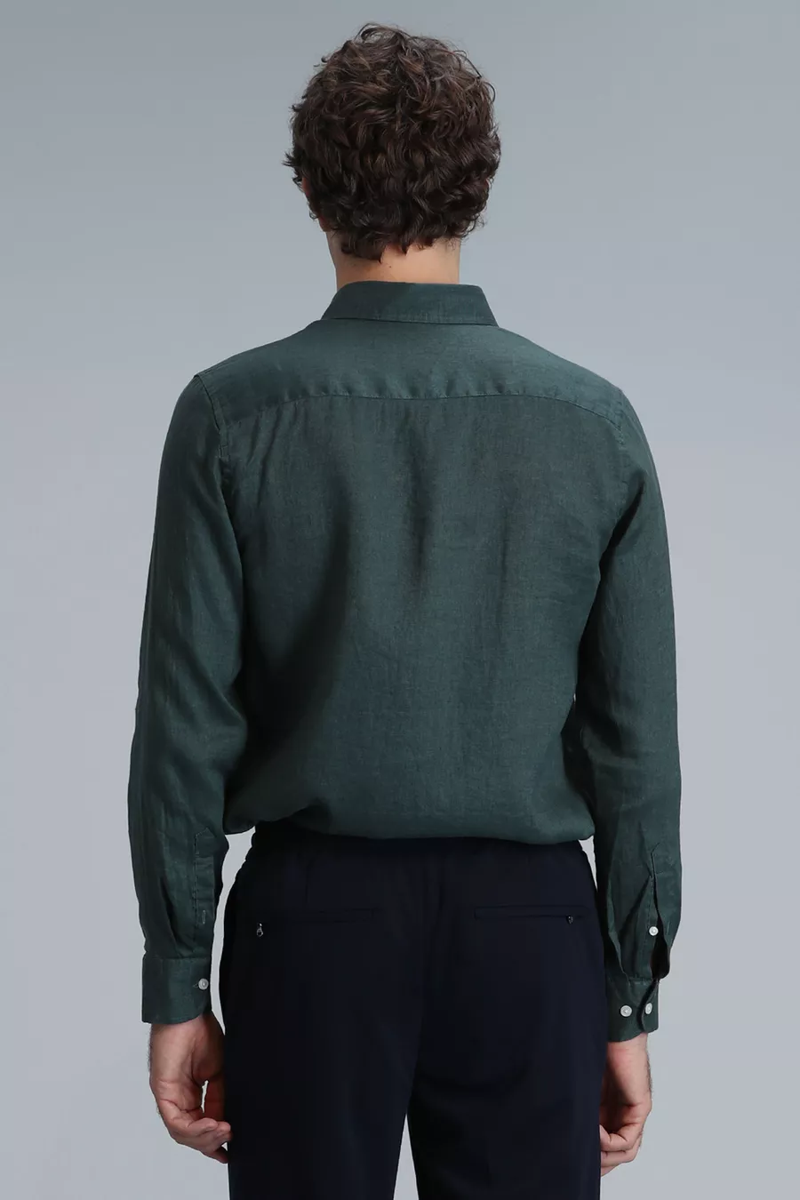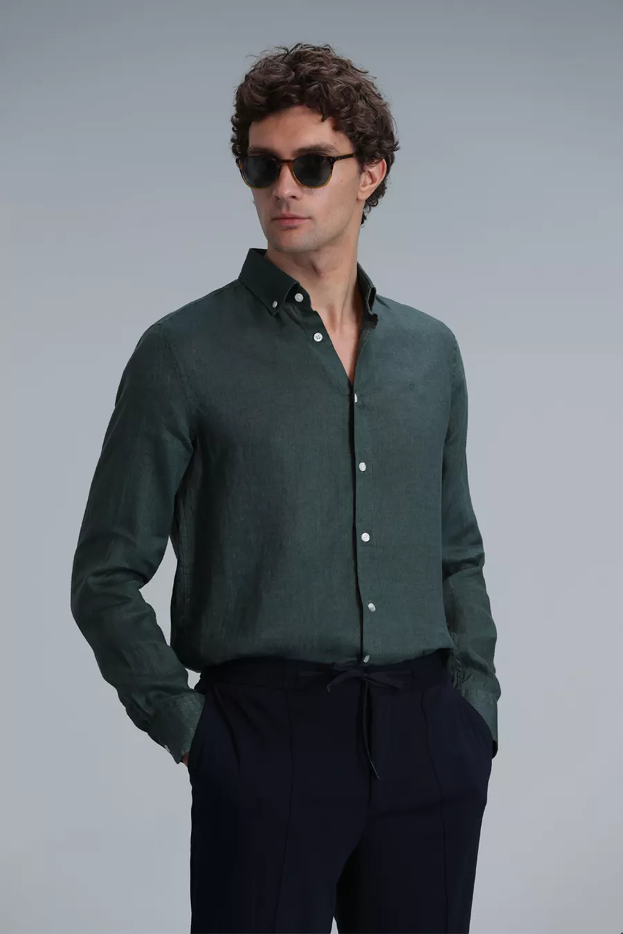 Pattern: Plain Fit: Regular Collar Type: Button Collar Fabric Type: Woven Sleeve Type: Long Sleeve Color: Green Material: Fabric Closure Type: Buttoned Product Detail: Buttoned Pocket: No pockets Sleeve Length: Long Collection: Basic Length: Standard Occasion: Casual/Everyday Silhouette: Basic Additional Feature: Keeps you cool Weave Type: Linen look Print/Embroidery Technique: No print Persona: Smart Sustainability Detail: No Belt/Strap Status: Without belt Material Composition: Not specified Washing Instructions: T09 Origin: TR Box Status: No box