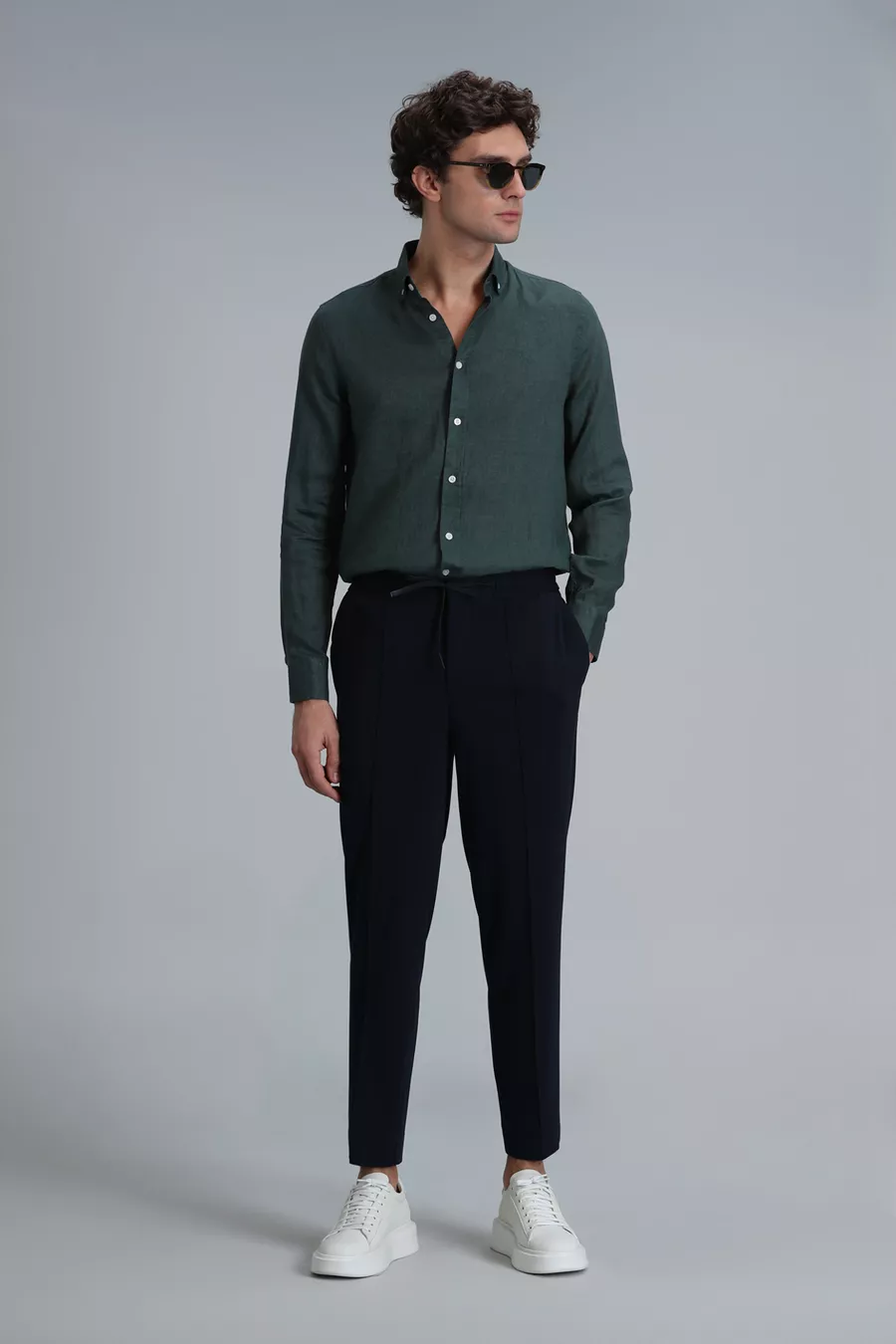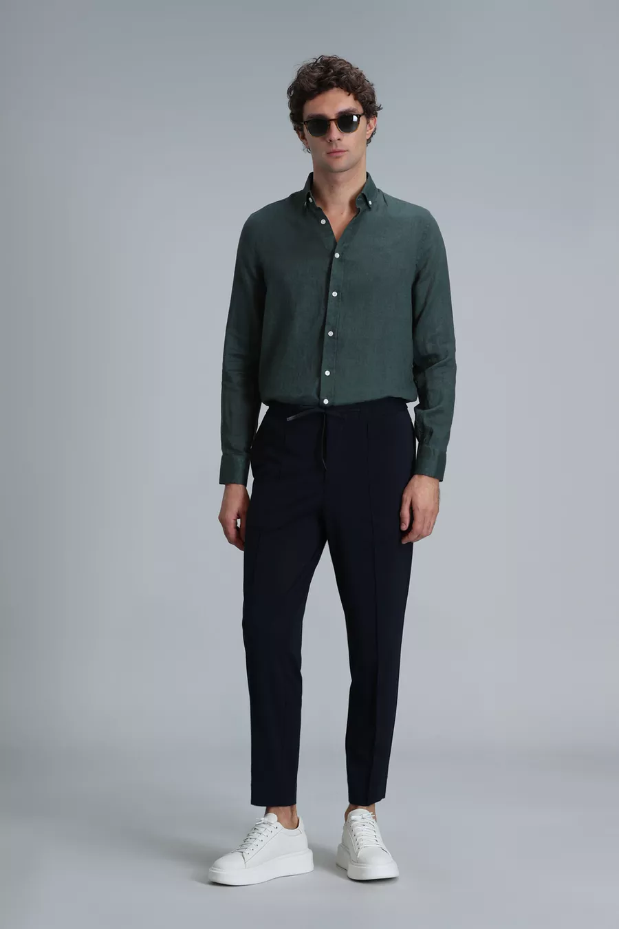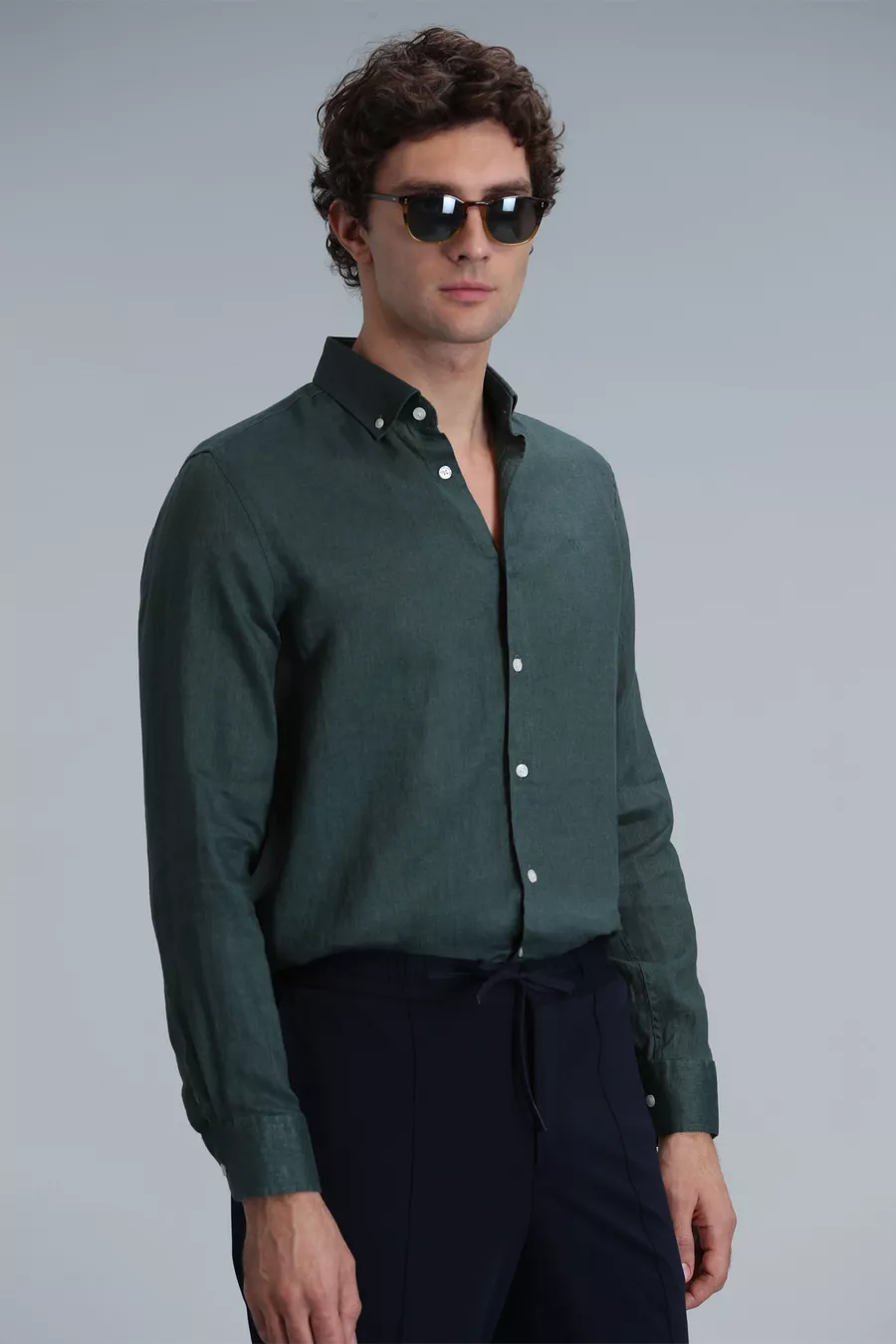 Pattern: Plain Fit: Regular Collar Type: Button Collar Fabric Type: Woven Sleeve Type: Long Sleeve Color: Green Material: Fabric Closure Type: Buttoned Product Detail: Buttoned Pocket: No pockets Sleeve Length: Long Collection: Basic Length: Standard Occasion: Casual/Everyday Silhouette: Basic Additional Feature: Keeps you cool Weave Type: Linen look Print/Embroidery Technique: No print Persona: Smart Sustainability Detail: No Belt/Strap Status: Without belt Material Composition: Not specified Washing Instructions: T09 Origin: TR Box Status: No box