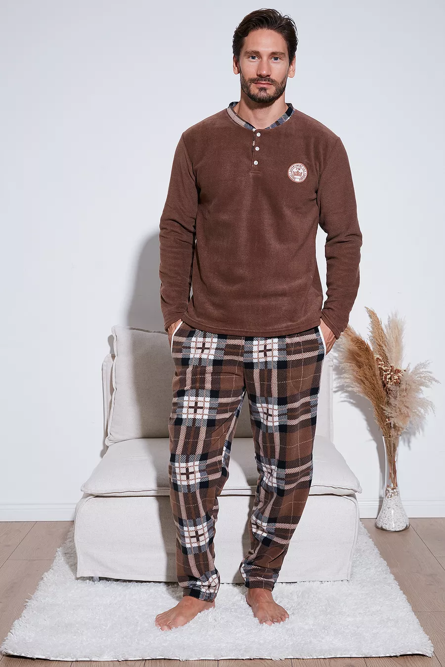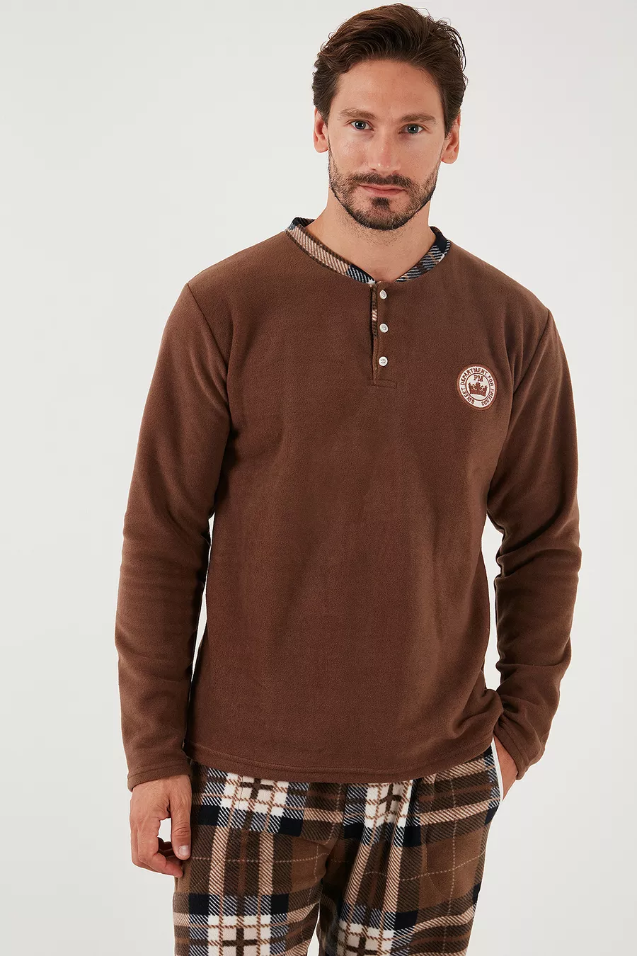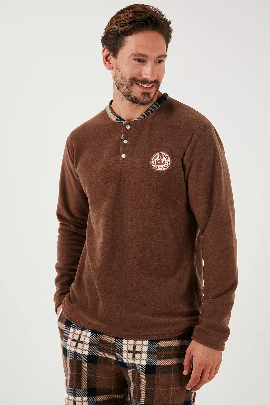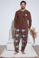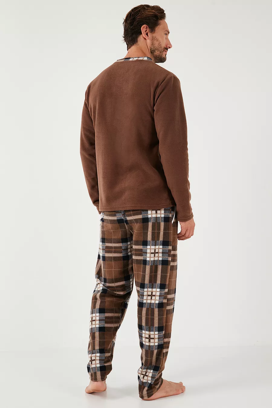 Sustainability Detail: No Sleeve Type: Long Sleeve Pattern: Plaid / Checkered Neck Type: Crew Neck Pants Length: Long Color: Brown Material: Polyester Product Type: Plain Product Detail: With Pocket Detail Collection: Homewear Sleeve Length: Long Technique: Fleece Fit: Regular Fabric Type: Knitted Waist: Regular Waist Weave Type: Fleece Number of Pieces: 2 Pieces Silhouette: Regular Persona: Fashion Forward Occasion: Casual/Daily Additional Feature: No Additional Feature Material Composition: 100% Polyester Washing Instructions: Machine Wash 30° Pants Type: Regular Package Contents: 2 Pieces Size: Standard Origin: Turkey