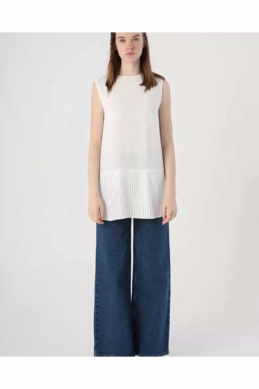 Neck Type: Crew Neck Collection: Modest Wear Fabric Type: Woven Sleeve Type: Sleeveless Pocket: No Pocket Pattern: Plain Fit: Regular Color: Ecru Product Detail: Buttoned Sleeve Length: Sleeveless Material: Cotton Polyester Weave Type: Crepe Belt/Sash: Beltless Occasion: Daily Persona: Cool & Comfort Closure Type: Buttoned Length: Standard Sustainability Detail: No Material Composition: Cotton Washing Instructions: T09 Silhouette: Regular Origin: TR Box Condition: No Box Package Contents: Single