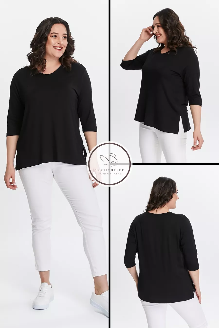 Plus Size New Season Side Slit Comfort Model Half Sleeve Comfortable Mother Cotton Tunic Blouse
