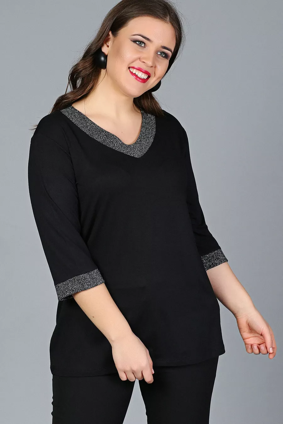 Plus Size Collar Sleeve Glitter Half Sleeve Blouse