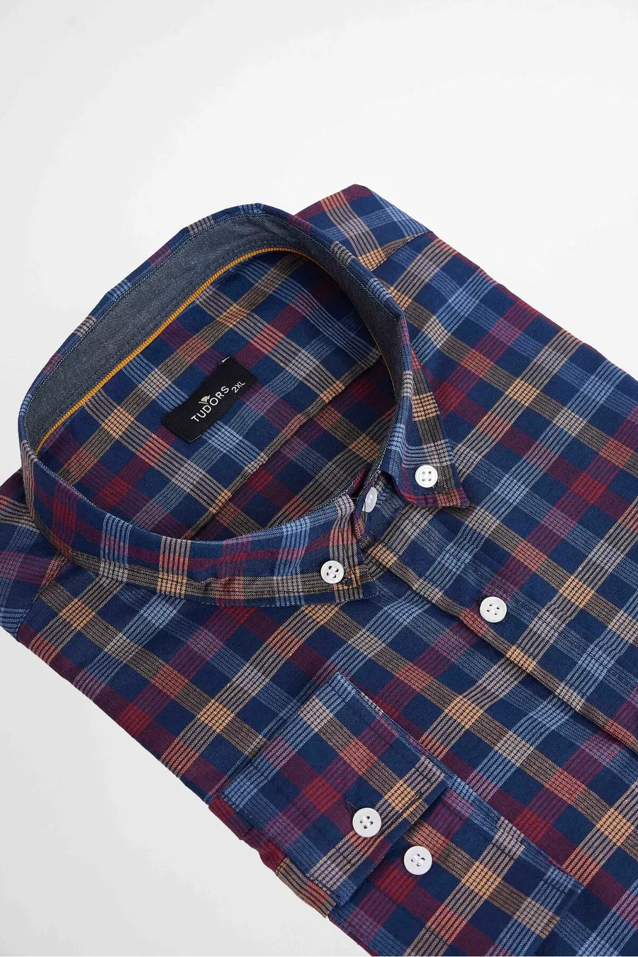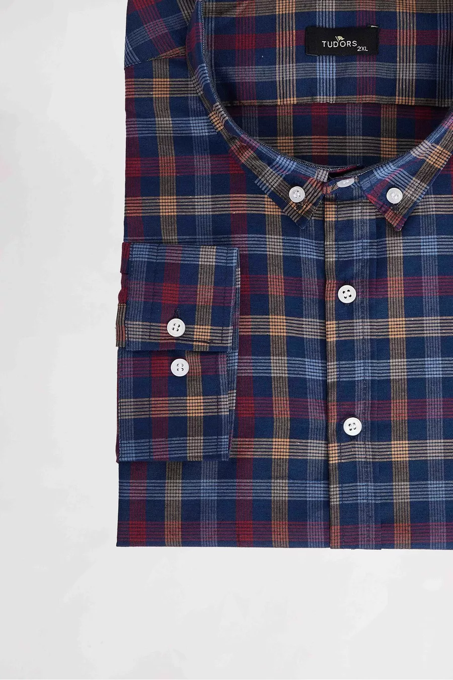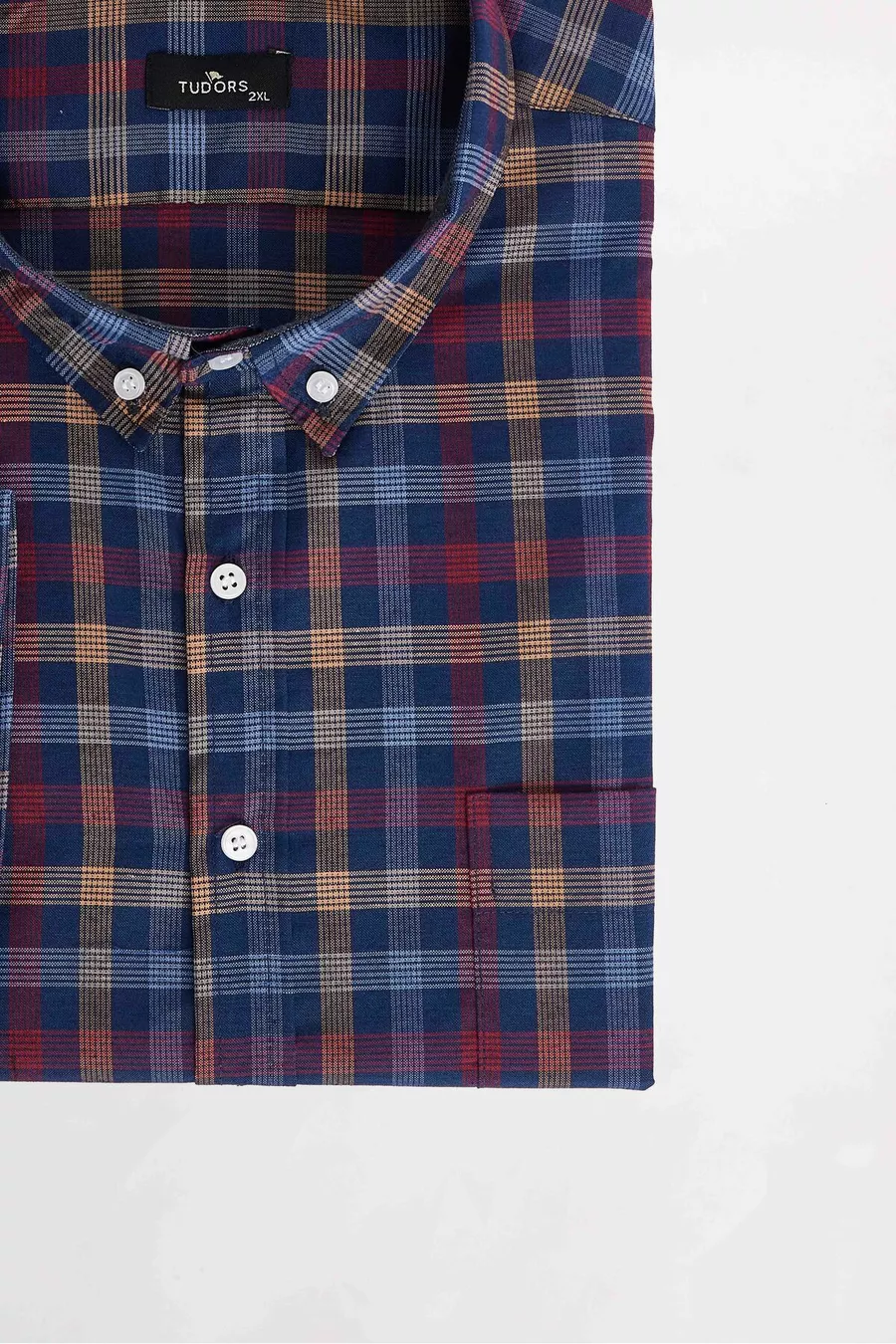 Plus Size Plaid Bordered Collar Button-Up Men's Shirt