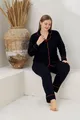 Additional Feature: Non-See-Through Color: Black Sleeve Type: Long Sleeve Pattern: Plain Collar Type: Shirt Collar Pant Length: Long Material: Suprem Fit: Plus Size Fabric Type: Knit Occasion: Homewear Sustainability Detail: No Silhouette: Long Sleeve Length: Long Weaving Type: Suprem Waist: Regular Waist Set Type: T-shirt-Sweatpants Persona: Cool & Comfort Number of Pieces: 2 Pieces Washing Instruction: T1 Pant Style: Straight Leg Collection: Homewear Package Contents: 2-piece set Length: Long