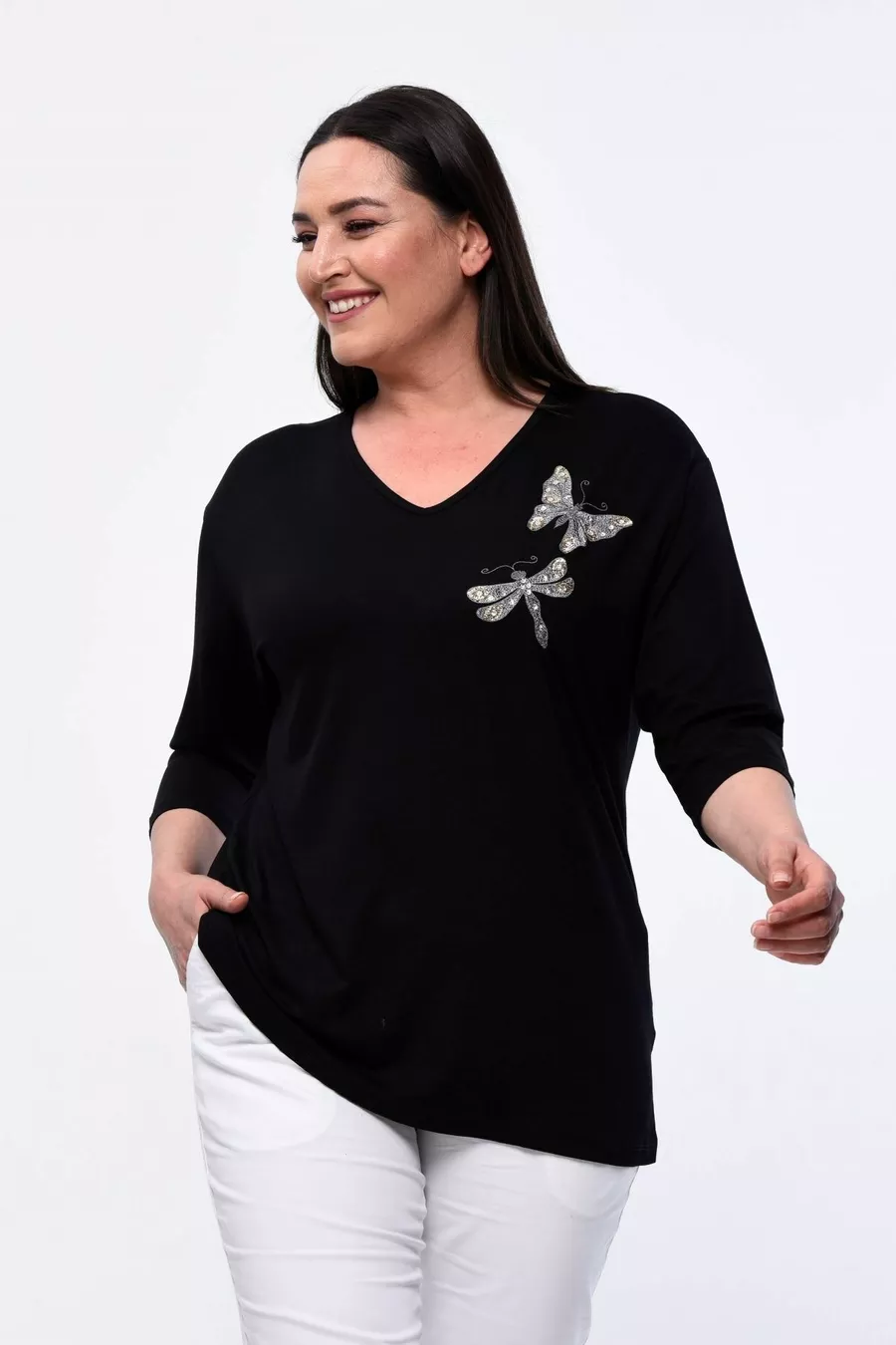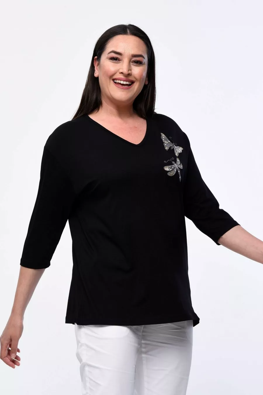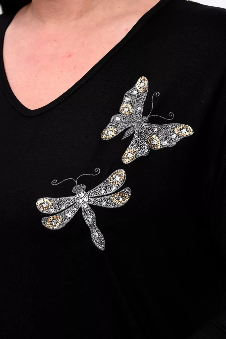Plus Size New Season Comfortable Stretchy Model with Butterfly Embroidered Pattern, Half Sleeve, Mom's 4-Season Blouse